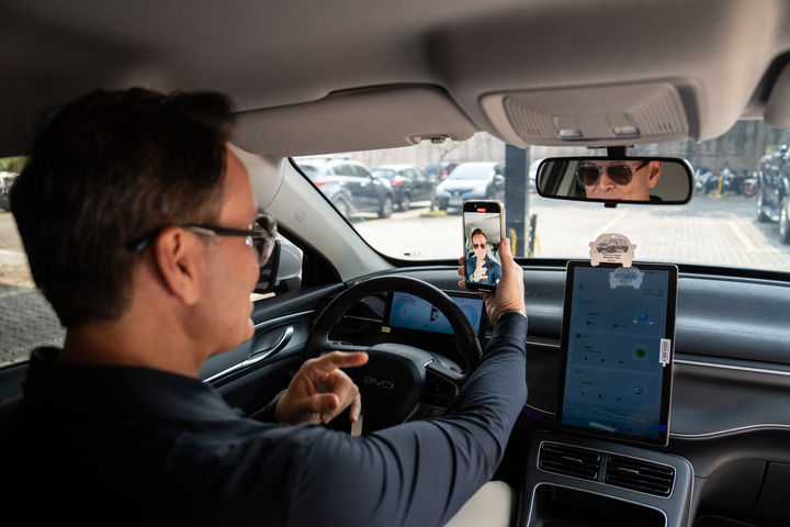 2024年9月2日,巴西网红费利佩·费拉在里约热内卢的汽车改装店中录制视频。费拉是一名粉丝超过400万、专门做汽车销售和改装的网红,由于他经常推荐纯电动或者混合动力新款车型,也被称为巴西新能源车“民间大使”。每逢周末,费拉都会受邀去各品牌的4S店,包括中国品牌比亚迪在内的多家在巴车企都与他签约,在门店开业或新车型上市时邀请他出席。新华社记者 王天聪 摄