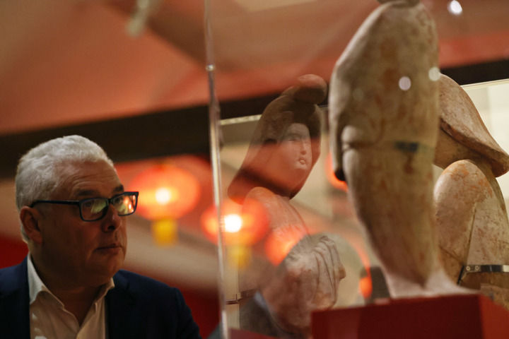 2024年11月18日,在位于法国巴黎的吉美国立亚洲艺术博物馆,一名观众参观“中国·唐——一个多元开放的朝代(7至10世纪)”展览。新华社记者 高静 摄