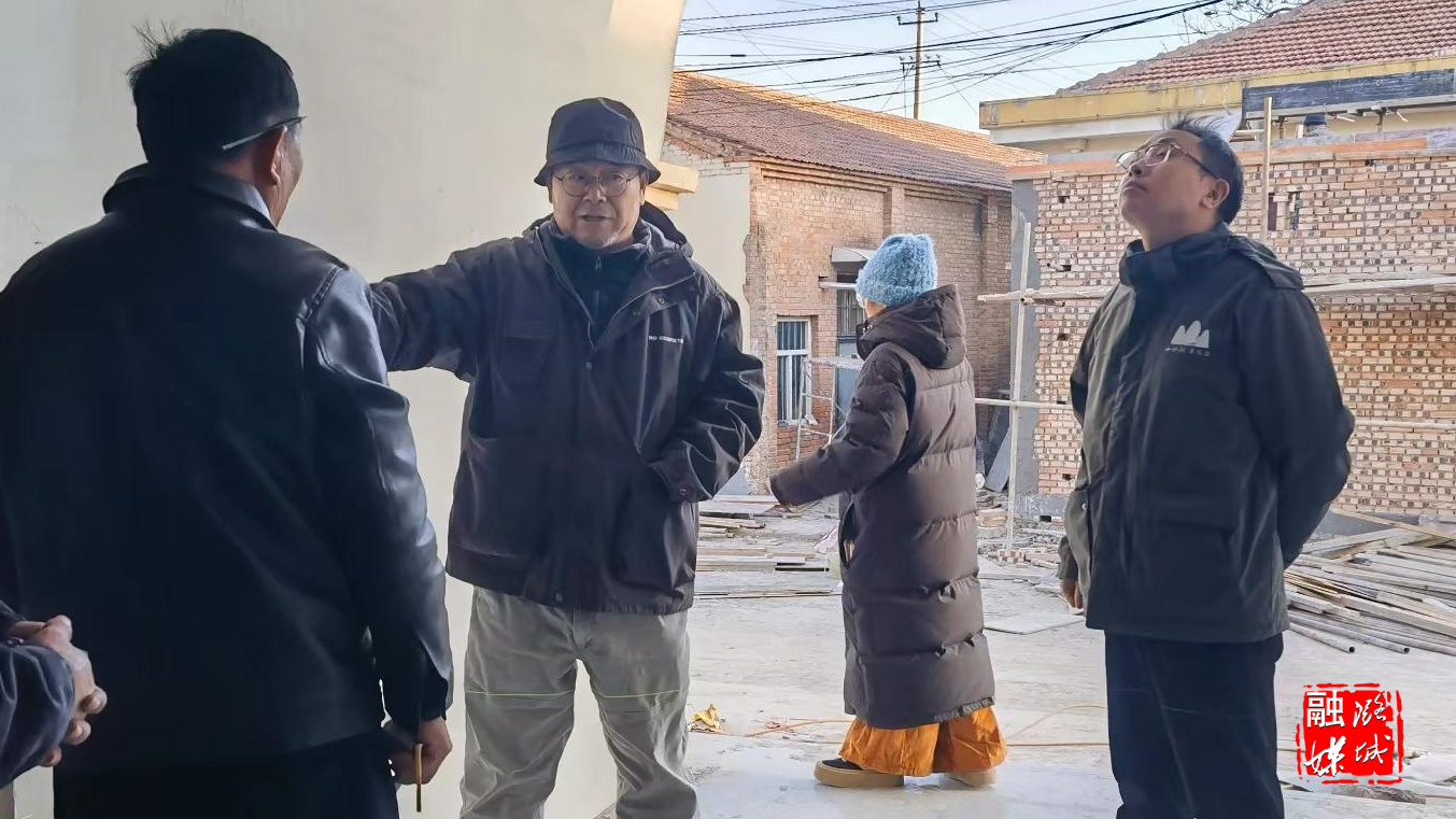 ▲辛安泉镇相关负责人与清华大学清尚建筑设计研究院特聘设计师靳彦广在石梁村实地查看太行区第四军分区及32团石梁旧址保护提升项目建设进展情况。