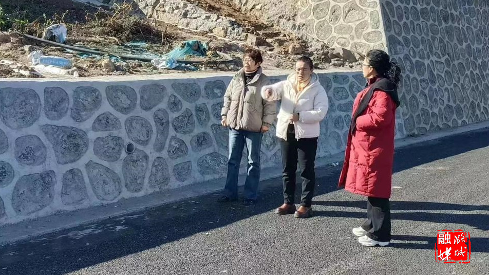 ▲店上镇工作人员到曹家沟村文王山景区曹家沟—北村路段查看工程建设进度及沿线环境卫生整治情况。