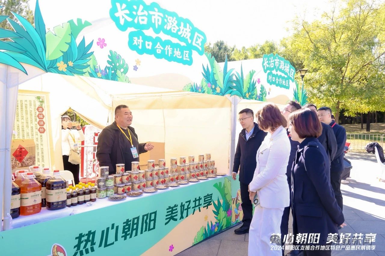 两年来,朝阳区先后在辖区盒马生鲜超市、永辉超市、fudi会员超市、大洋路市场等地深入推动潞城区大葱、小米、食用醋等特色产品进入北京消费市场;邀请潞城区参加2024年朝阳区支援合作地区特色农产品线下品鉴活动。另外,组织潞城区优质农产品参与线上淘宝直播带货,拓展线上消费渠道;2024年10月,邀请潞城区参加2024朝阳区支援合作地区特色产品惠民展销季活动。朝阳区总工会采购了潞城区醋和肉酱组合等特色农产品,销售额46.5万元。劳务协作 促社会参与共建