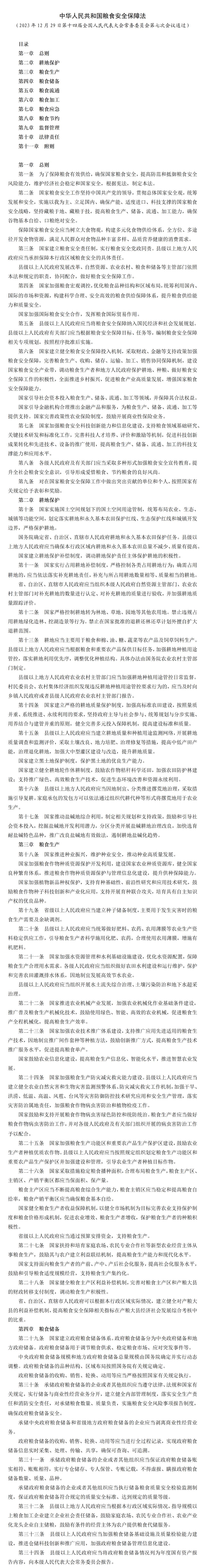 全文 | 中华人民共和国粮食安全保障法