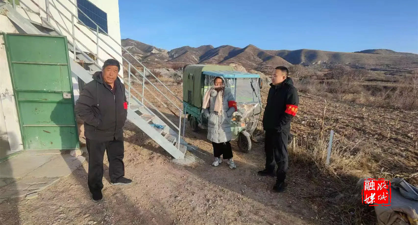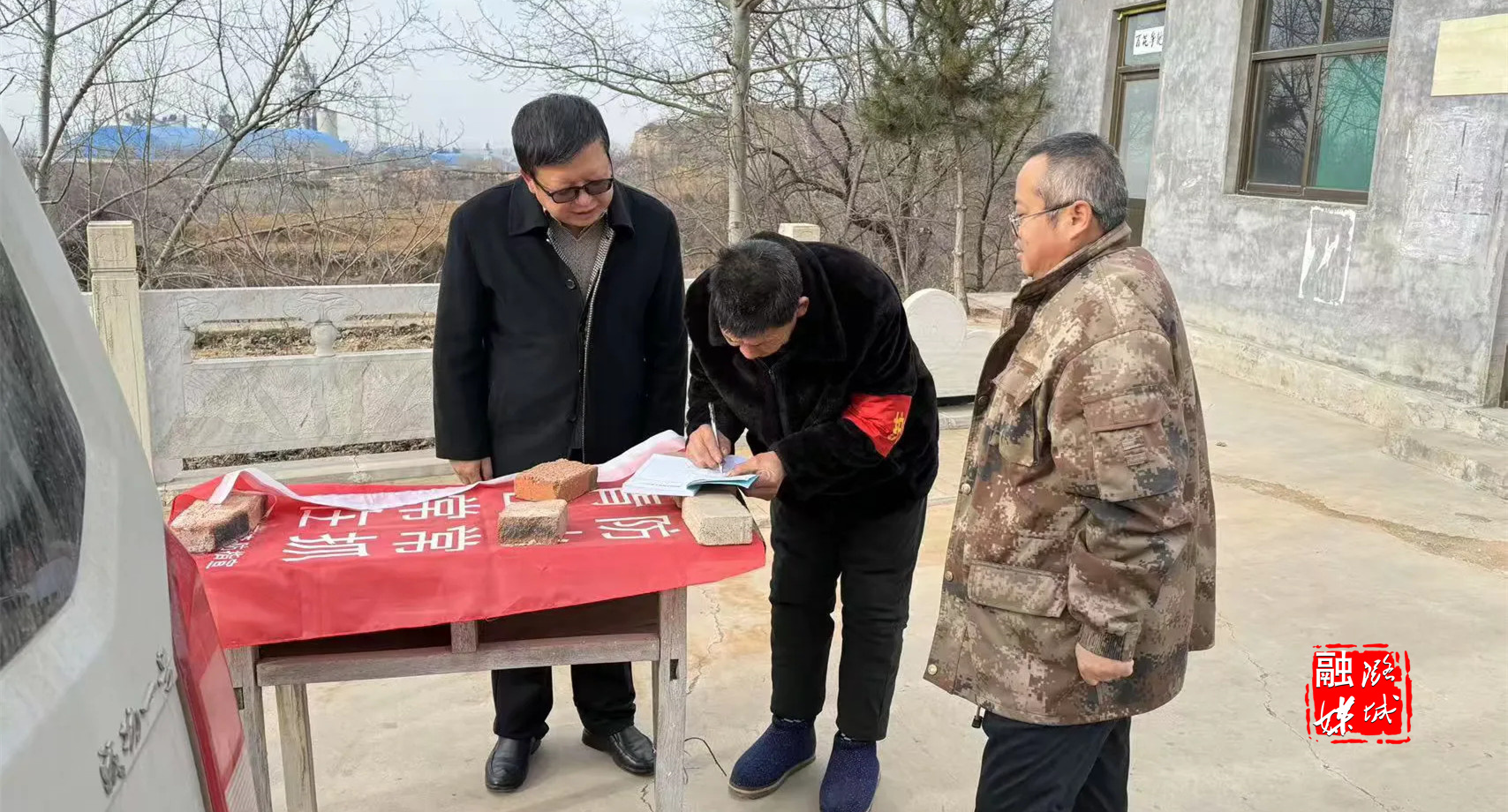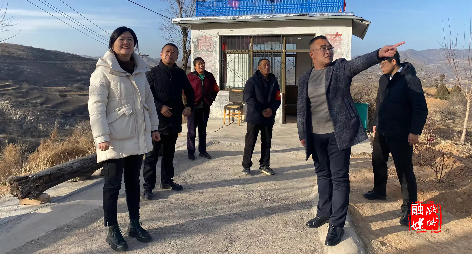 ★12月13日,辛安泉镇相关负责人在石梁村查看太行区第四军分区及32团石梁旧址保护提升项目建设进度。