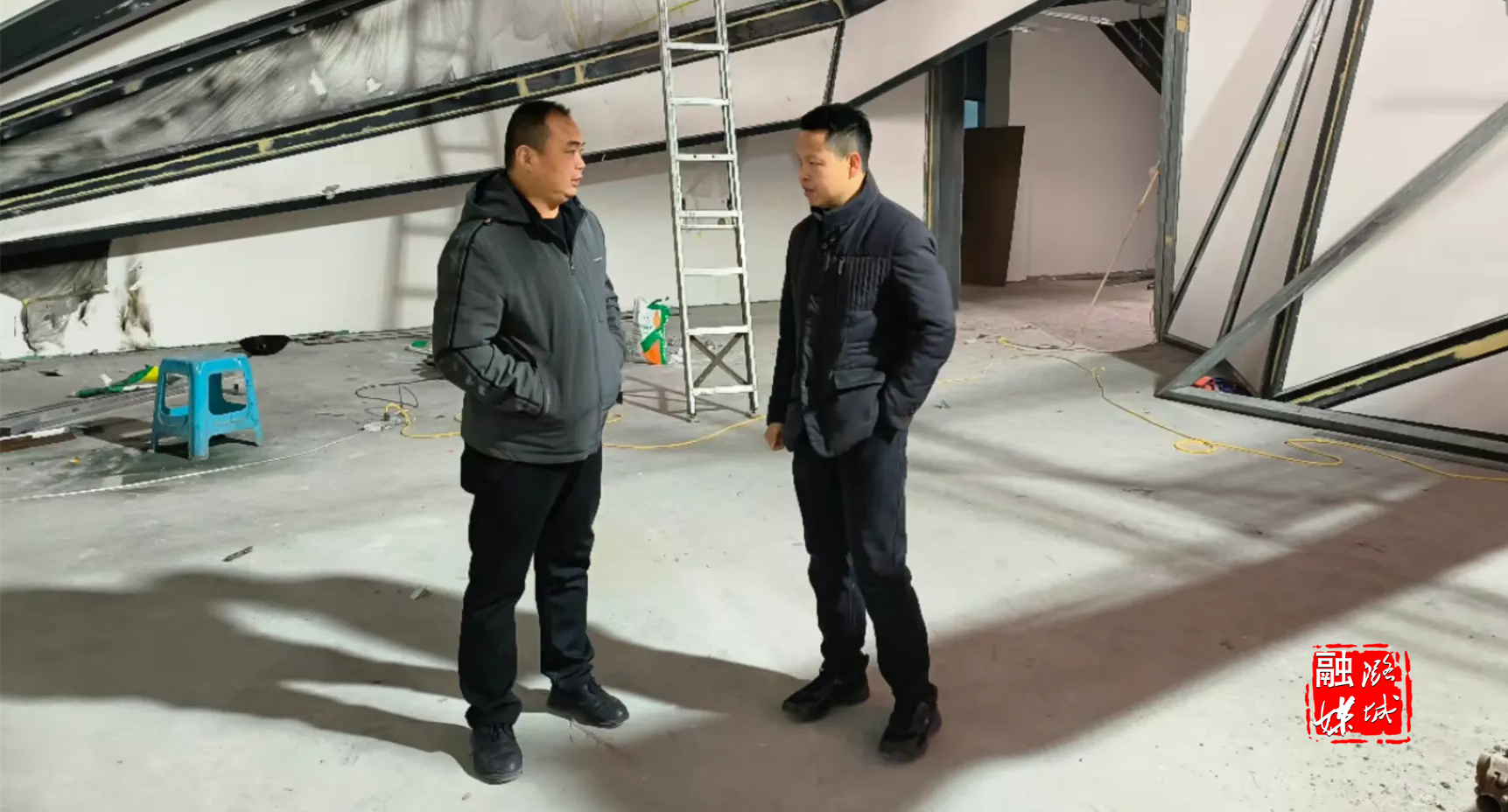 ★12月13日,成家川街道工作人员在祥井村人居环境整治项目施工工地督查安全环保工作。