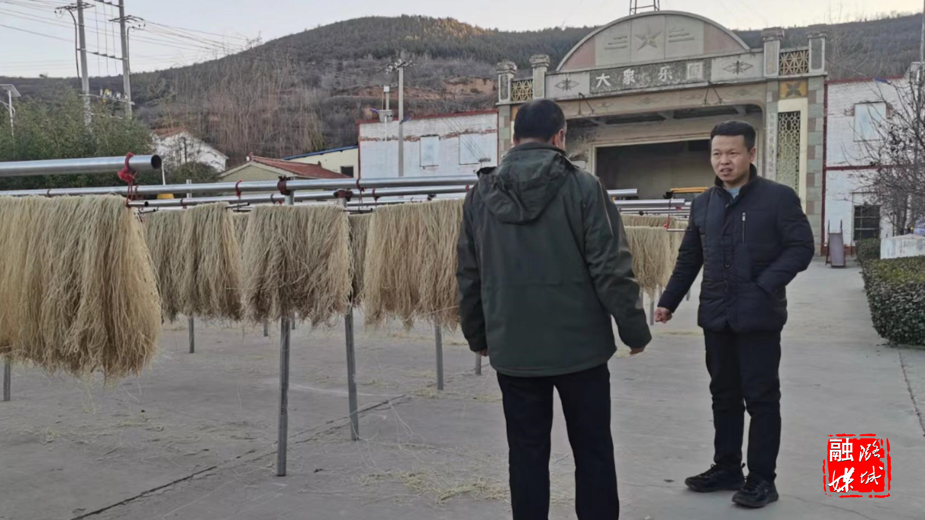 ★12月15日,辛安泉镇相关负责人在古城村红薯产业园查看红薯粉条加工生产情况。