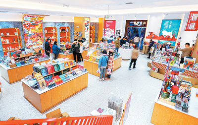 2024年国庆期间,随着“跟着悟空游山西”活动持续火爆,文创店内游客量日均超过7000人,甚至超出了店内最大游客承载量。孔祥权对10月2日的销售情况记忆犹新,店里那天来了很多非洲、东南亚地区的游客,每个游客几乎都是“肩擦着肩、脚顶着脚”去选购产品。由于语言不通,店员们使出浑身解数,尽力用身体语言和游客交流。冰箱贴产品极受游客欢迎,对应区域挤满了游客,店里专门安排了两名店员在冰箱贴区域专职销售,刚补上一批冰箱贴,立马就被抢购一空,店员甚至误以为是不是忘记了补货。