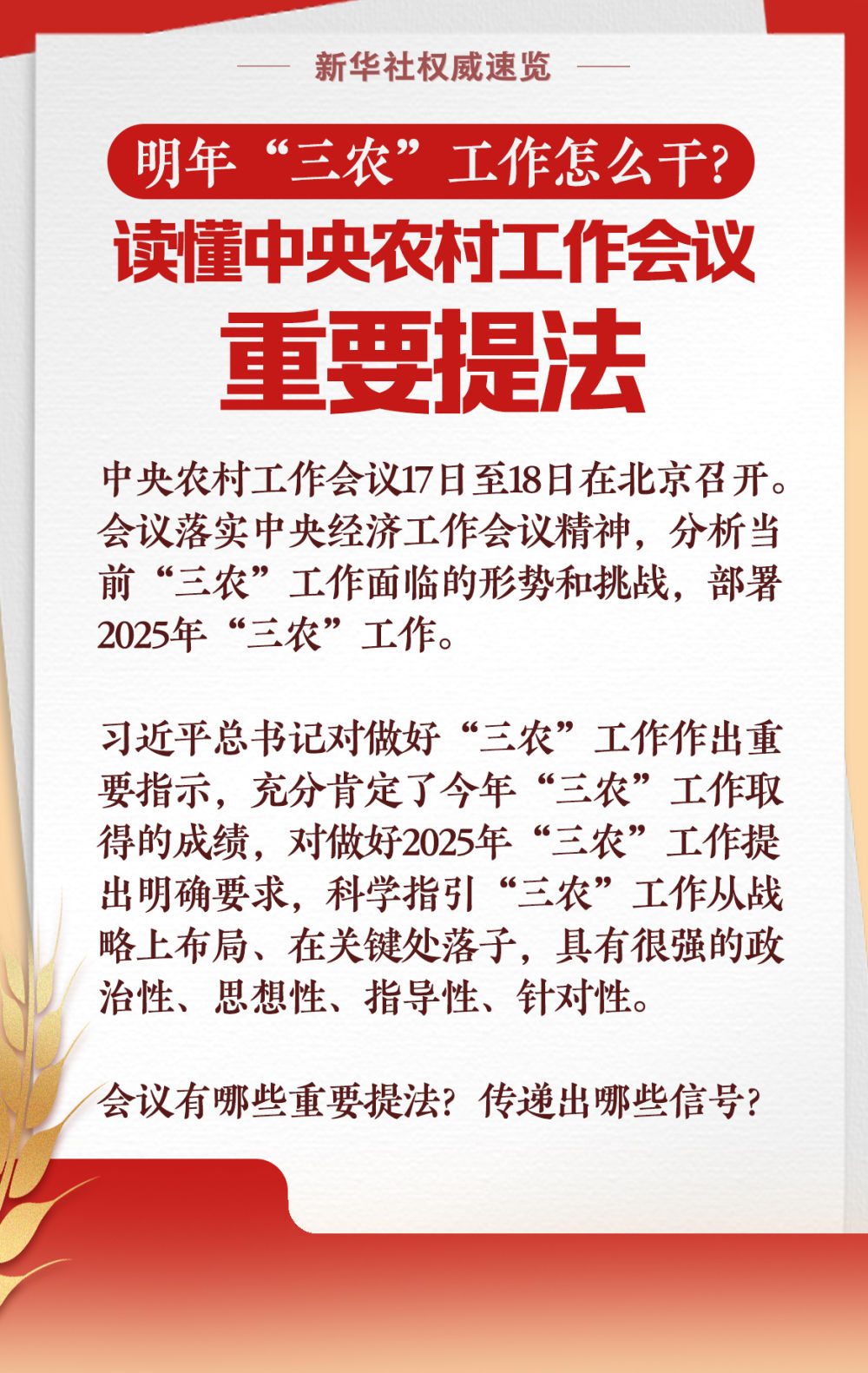 明年“三农”工作怎么干?读懂中央农村工作会议重要提法