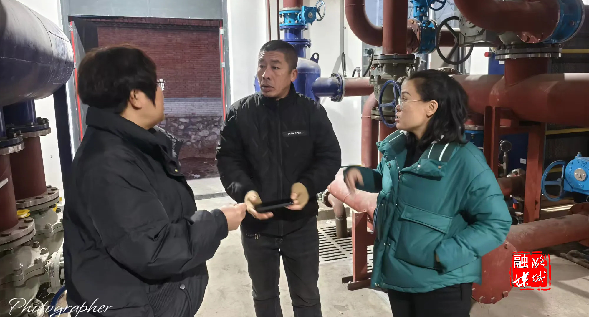 ▲店上镇工作人员到曹家沟村实地查看换热站运行情况。