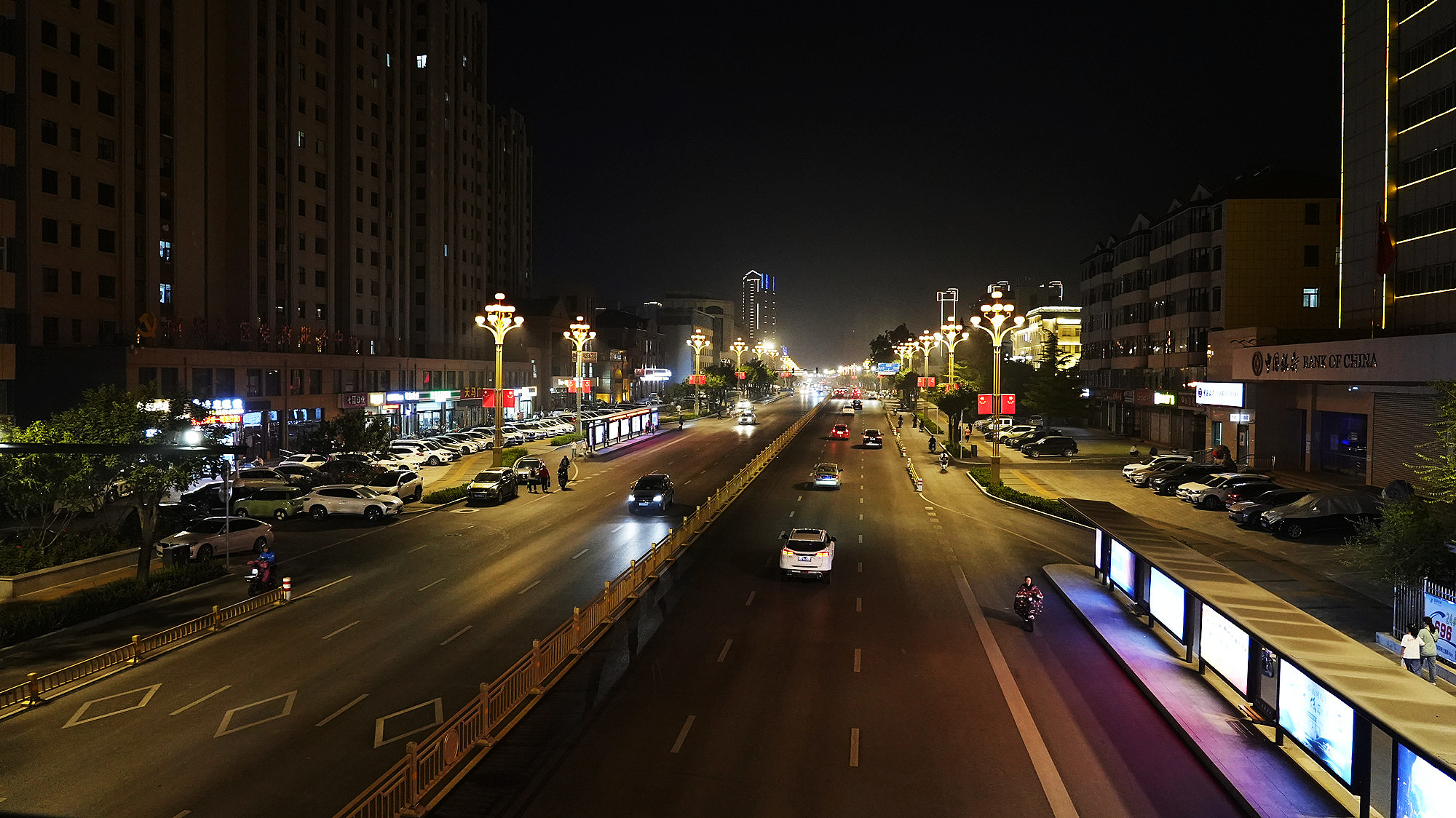 ▲微子镇工作人员在微子村查看能源岛夜间运行情况。