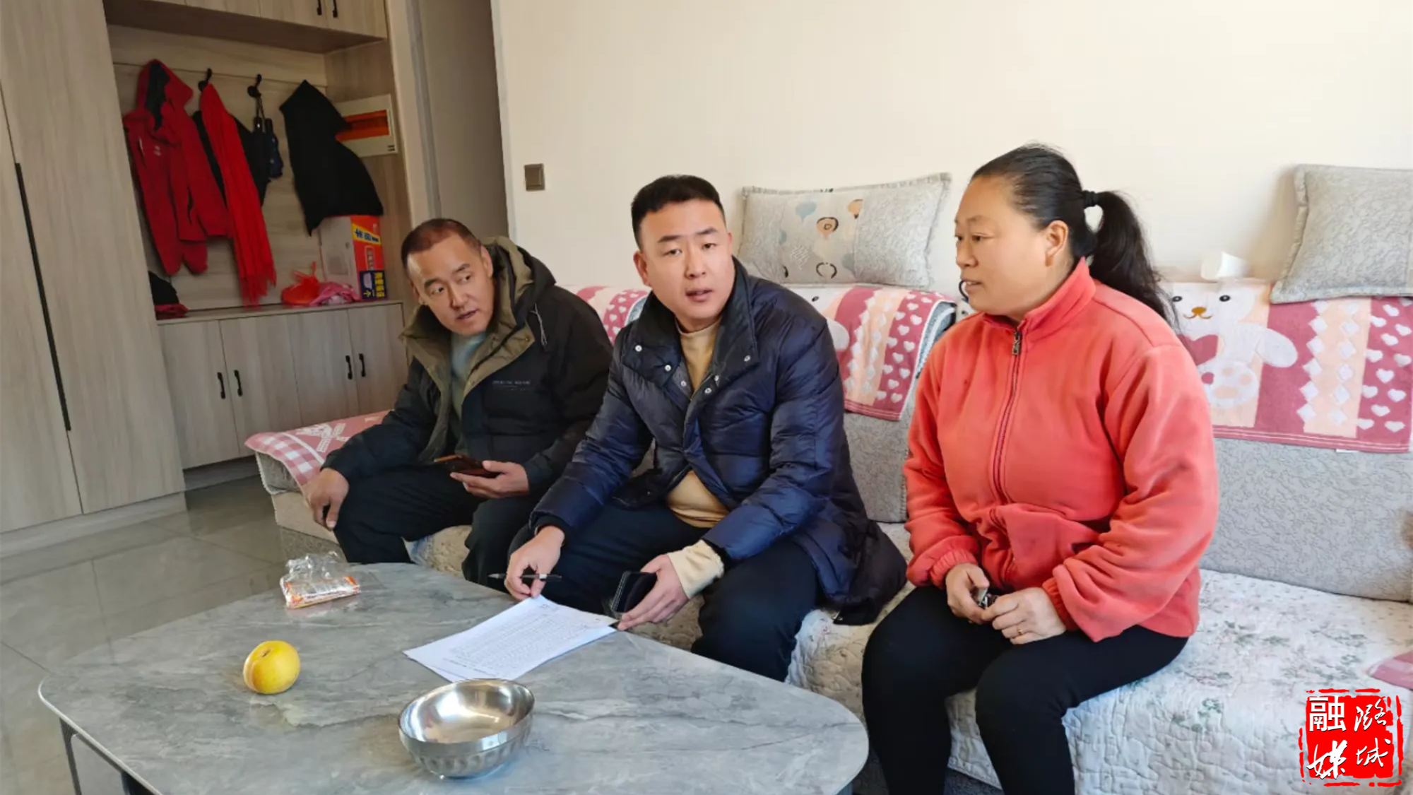 ▲辛安泉镇相关负责人在南流村开展“冬季九防·敲门行动”,就用火、用电、用气等安全隐患进行摸排,切实保障村民安全过冬。