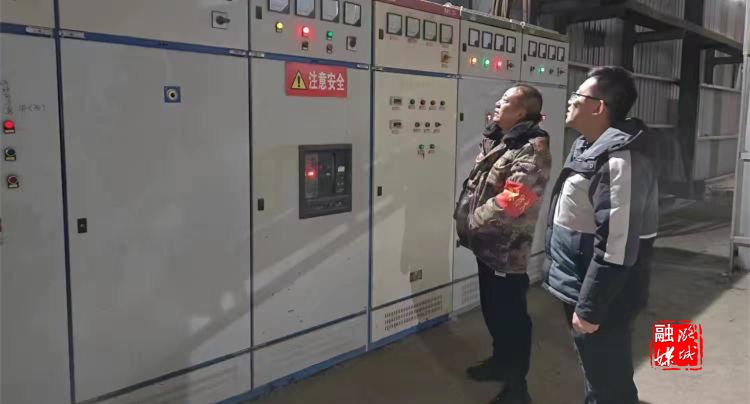 ▲微子镇相关负责人在微子村查看能源岛夜间运行情况。
