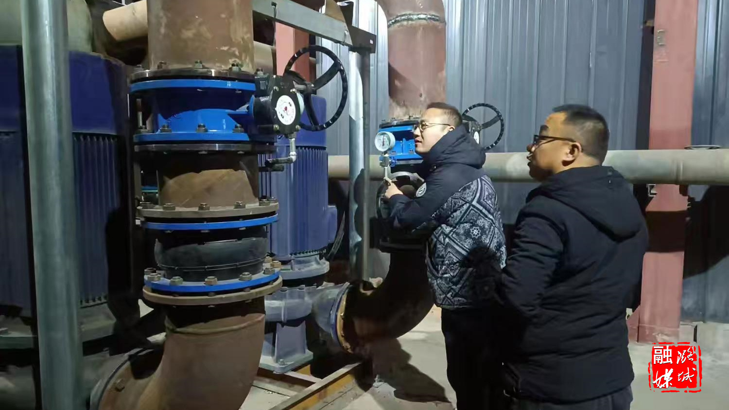 ★1月9日,微子镇相关负责人在微子村查看能源岛夜间运行情况。