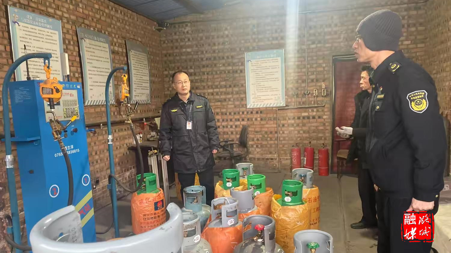 ▲区市场监督管理局相关负责人在液化气站开展节前燃气安全检查。