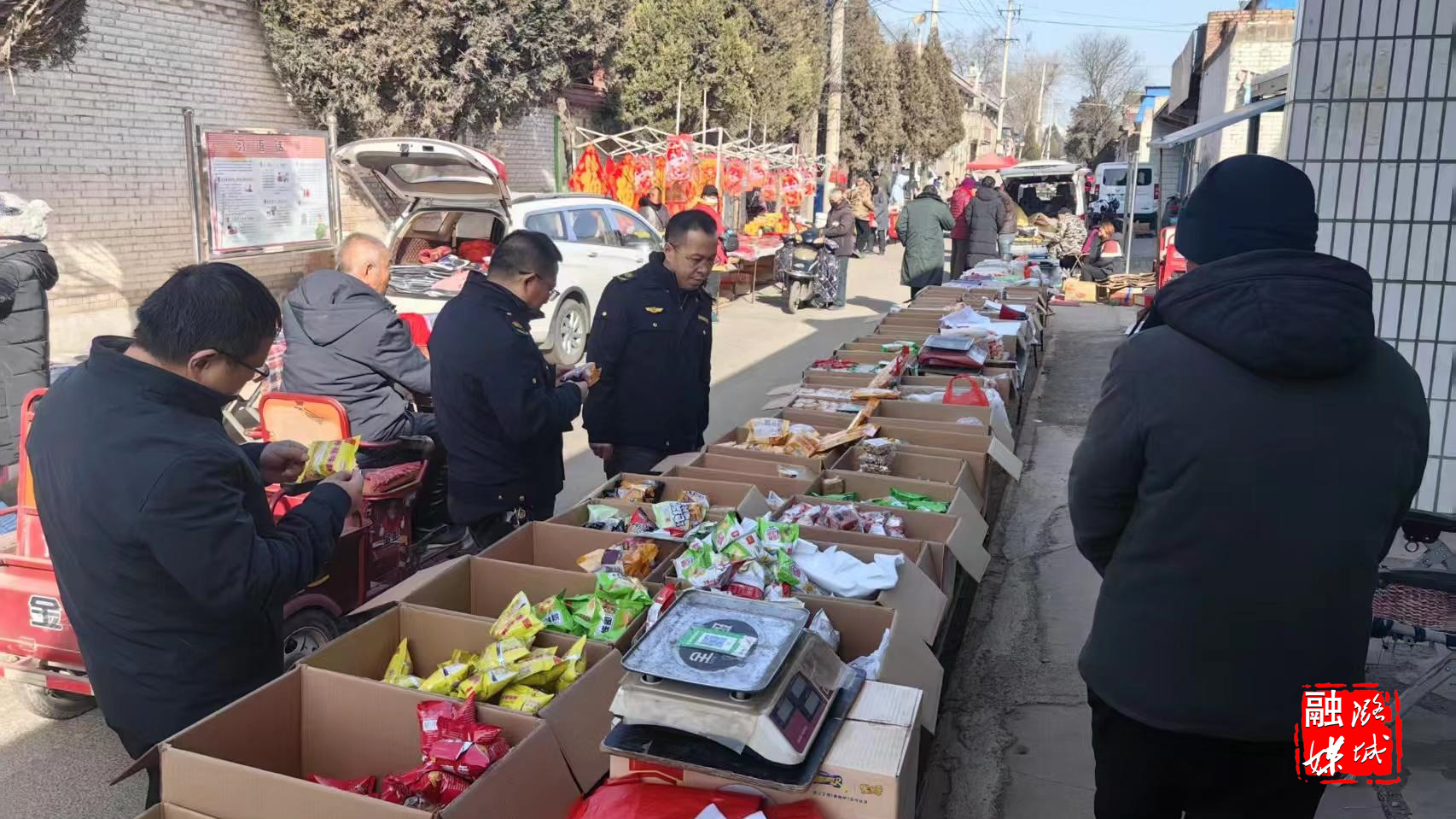 ▲史回镇工作人员带队到集市开展安全隐患排查工作。
