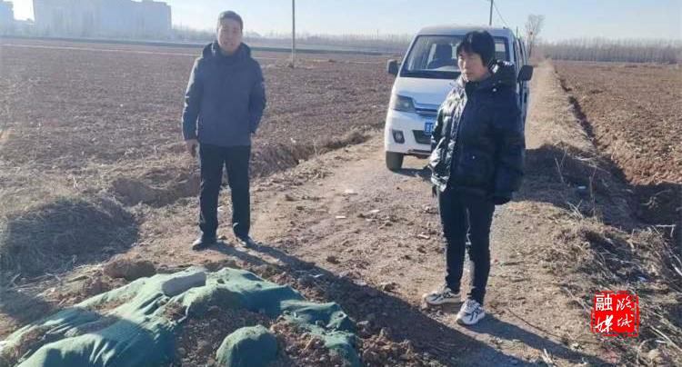 ▲翟店街道工作人员到各村查看物料苫盖情况。