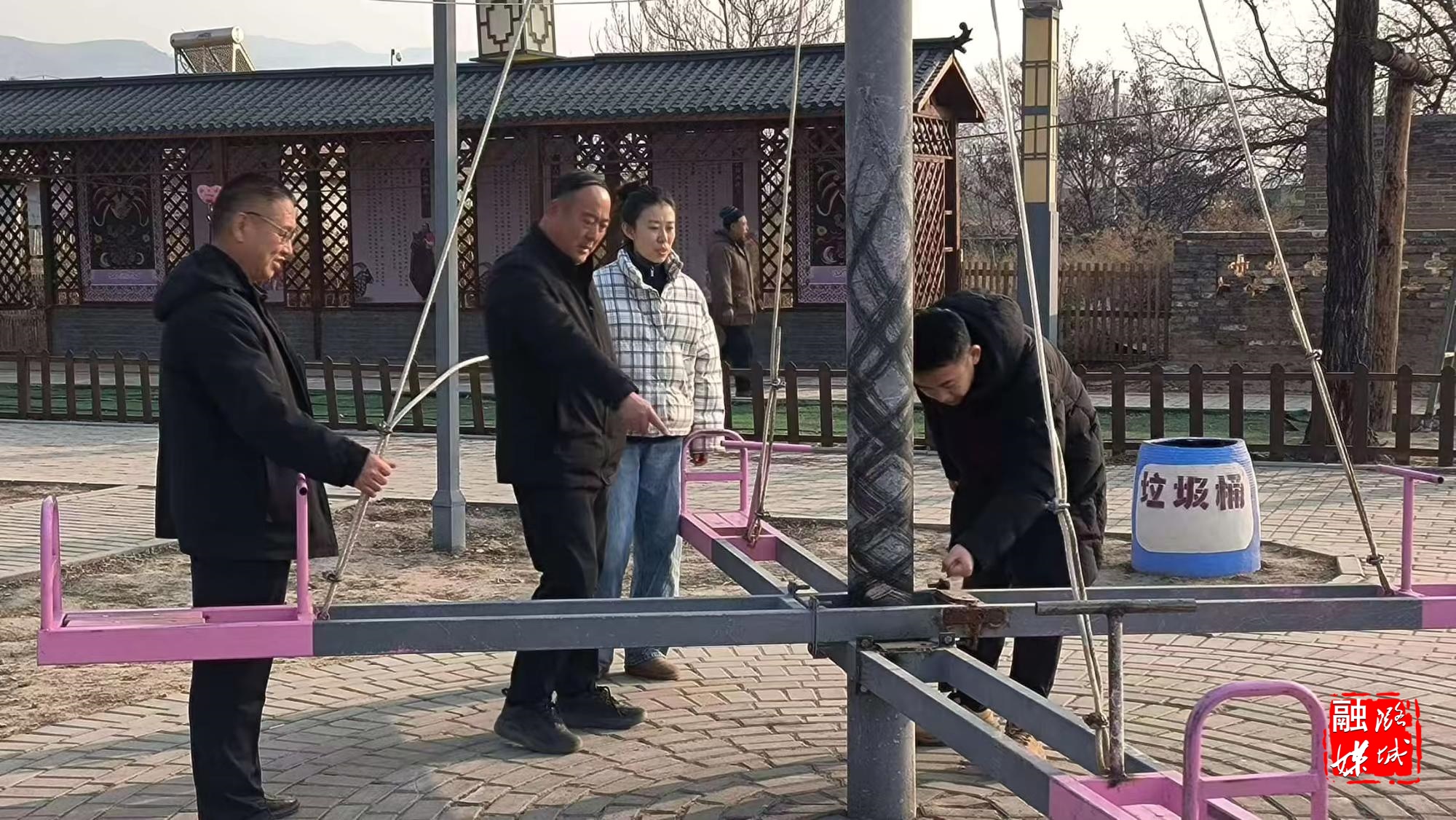 ★1月22日,翟店街道相关负责人到寨上村查看春节文化艺术活动筹备和现场娱乐设施安全情况。