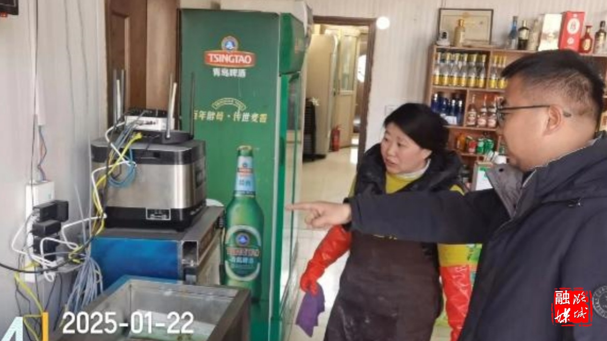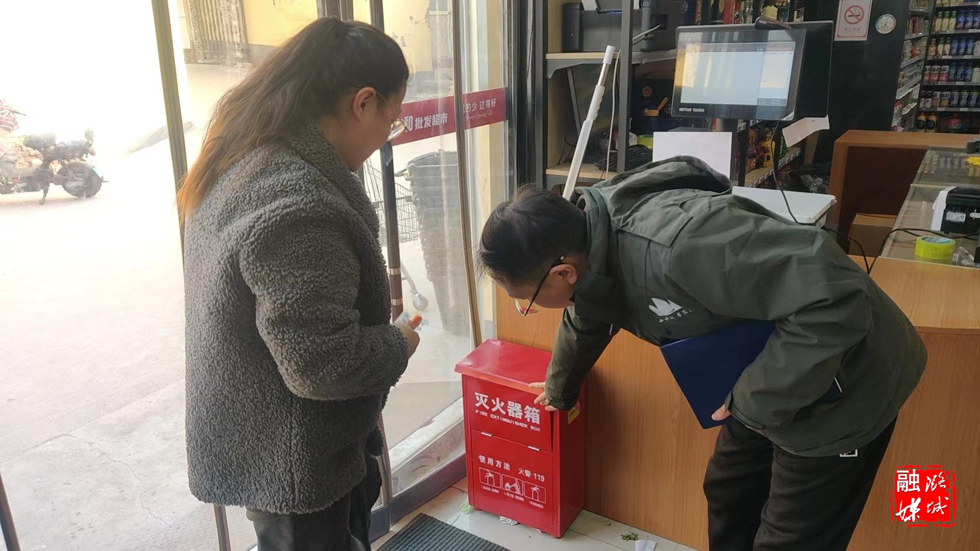 ▲店上镇相关负责人到辖区商超开展“冬季九防·敲门行动”。