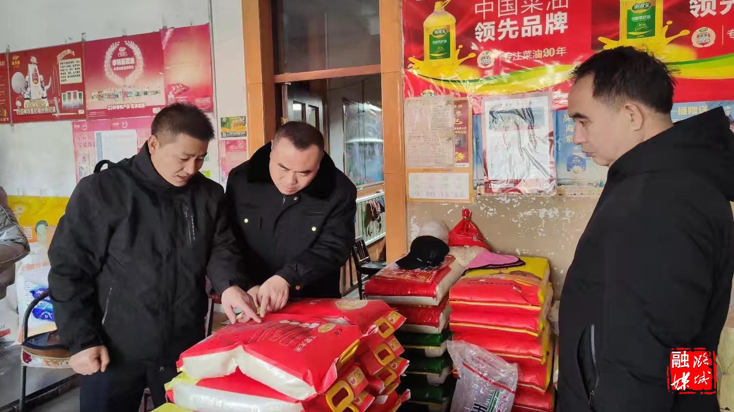 ▲微子镇相关负责人在辖区内“九小”门店针对食品安全、烟花爆竹禁燃禁放、粮油肉类价格等情况进行例行检查。