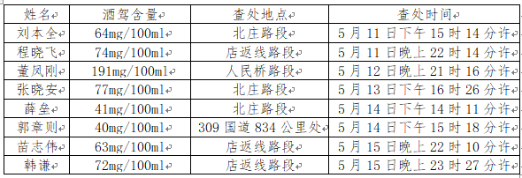 潞城交警大队对以下酒驾、醉驾的违法人员进行曝光,请广大驾驶员牢记“酒后不开车,开车不喝酒”,为家人负责、为自己负责、为社会负责,远离酒驾,珍爱生命。