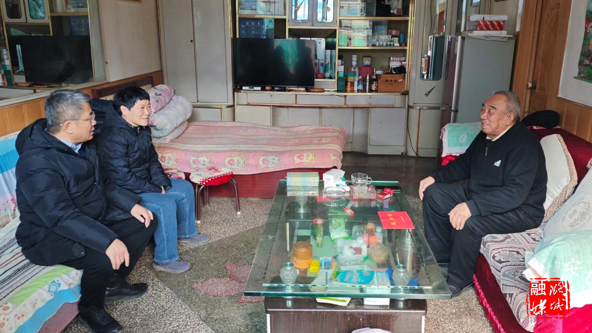 ★1月23日,成家川街道工作人员到窑上村入户查看群众保供保暖情况。