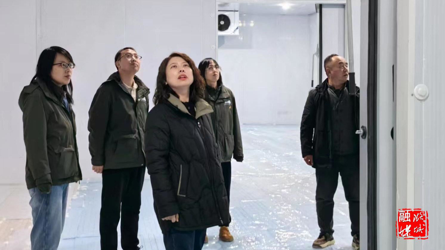 ★1月23日,辛安泉镇负责人在续村实地查看花生加工厂冷库建设情况。