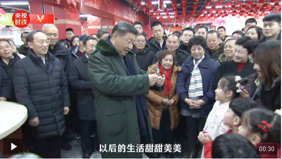 23日上午,正在辽宁考察的习近平总书记来到沈阳大东副食品商场,了解节日期间市场供应情况。孩子们见到习爷爷十分高兴,热情地给习爷爷递上新买的糖果。习近平接下糖果,亲切地说,你们的糖我收下,吃了你们的糖心里很甜,希望你们的生活像糖果一样甜甜美美。