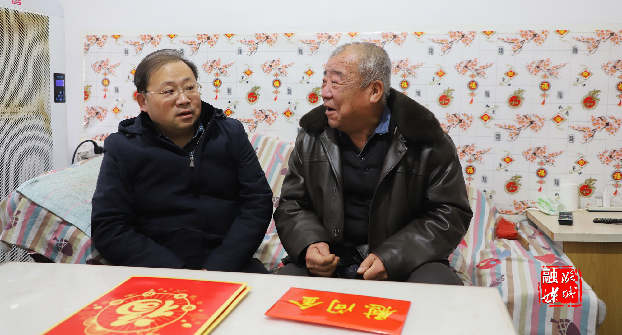 ▲翟店街道相关负责人入户慰问困难群众,并送去慰问品和新春问候。