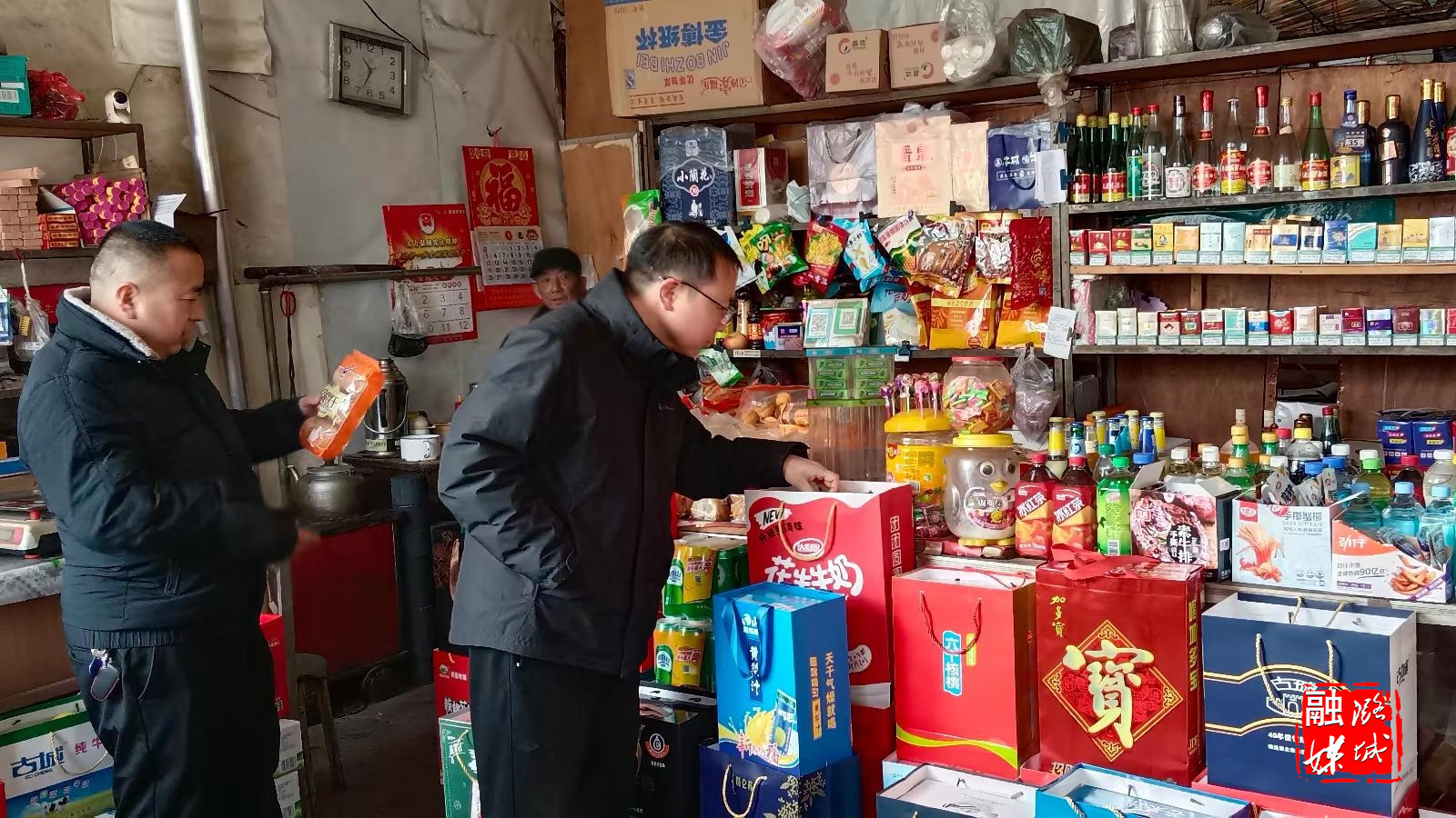 ★1月26日,微子镇工作人员在辖区内“九小”门店排查禁售烟花爆竹情况。