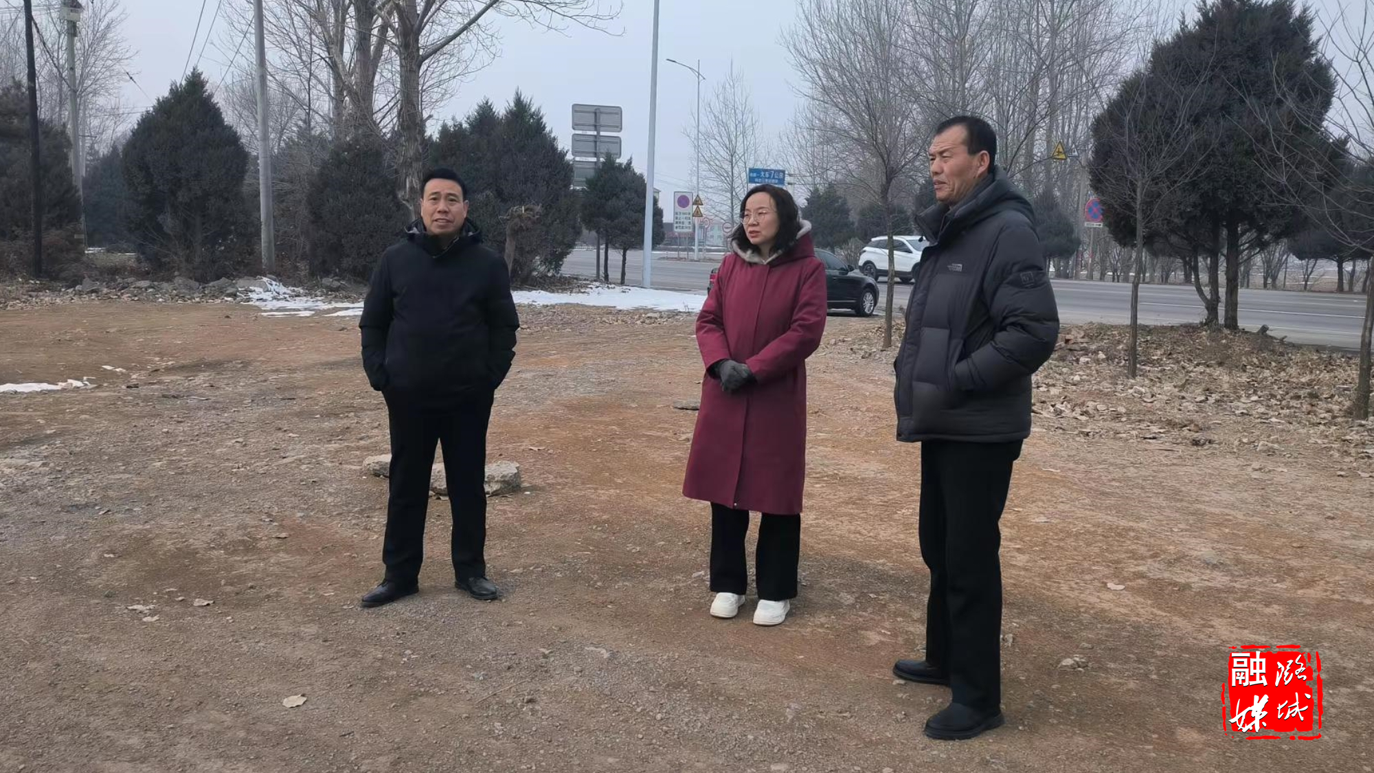 ▲翟店街道相关负责人到翟店村查看集体经济项目建设选址情况。
