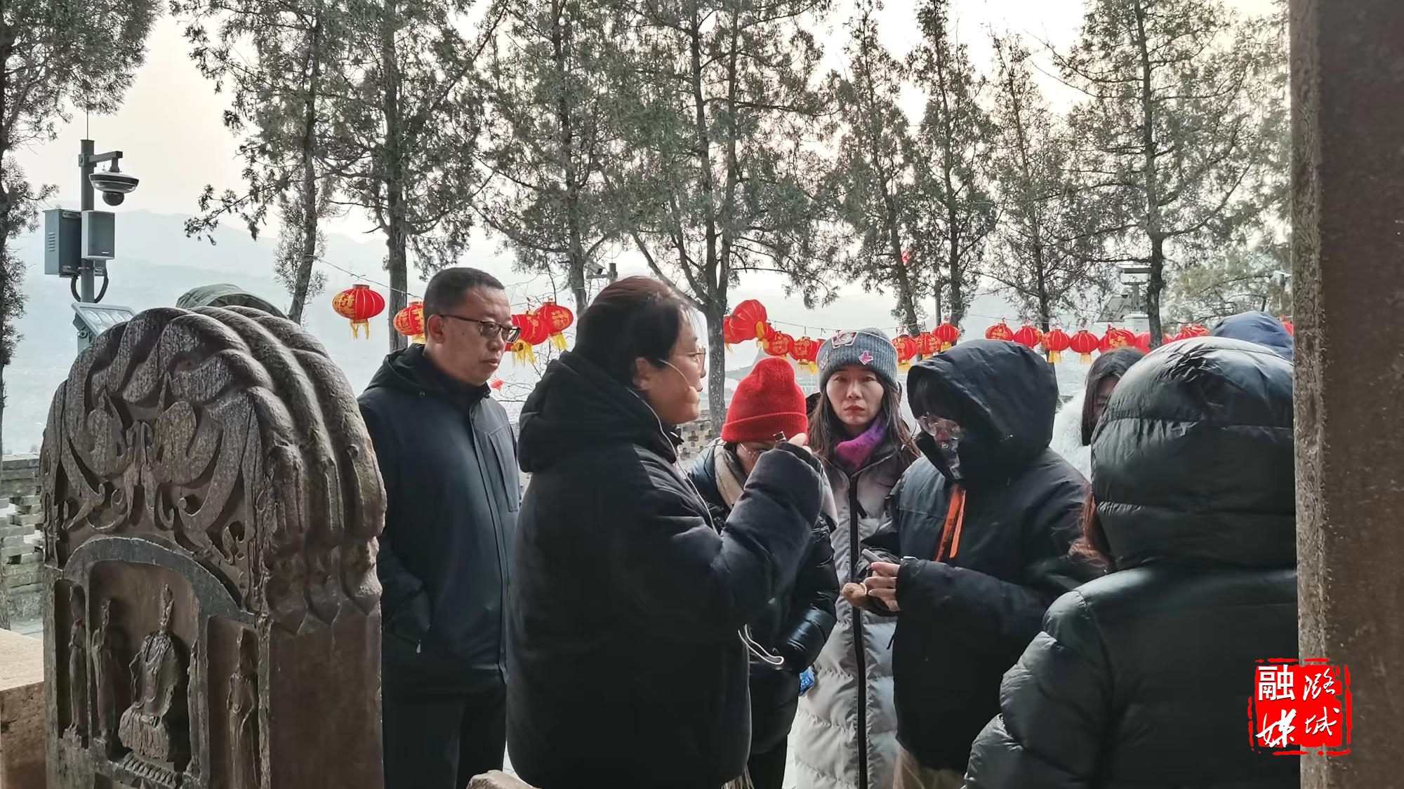 ▲黄牛蹄乡工作人员到辛安原起寺了解春节期间客流情况,排查消防安全隐患。