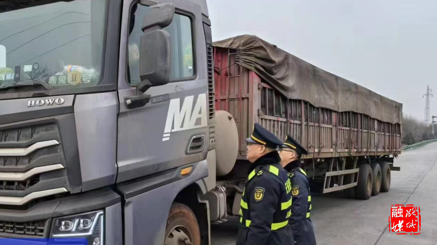 ▲区交通运输局工作人员在翟张线等路段开展道路扬尘、运输抛洒治理执法检查。