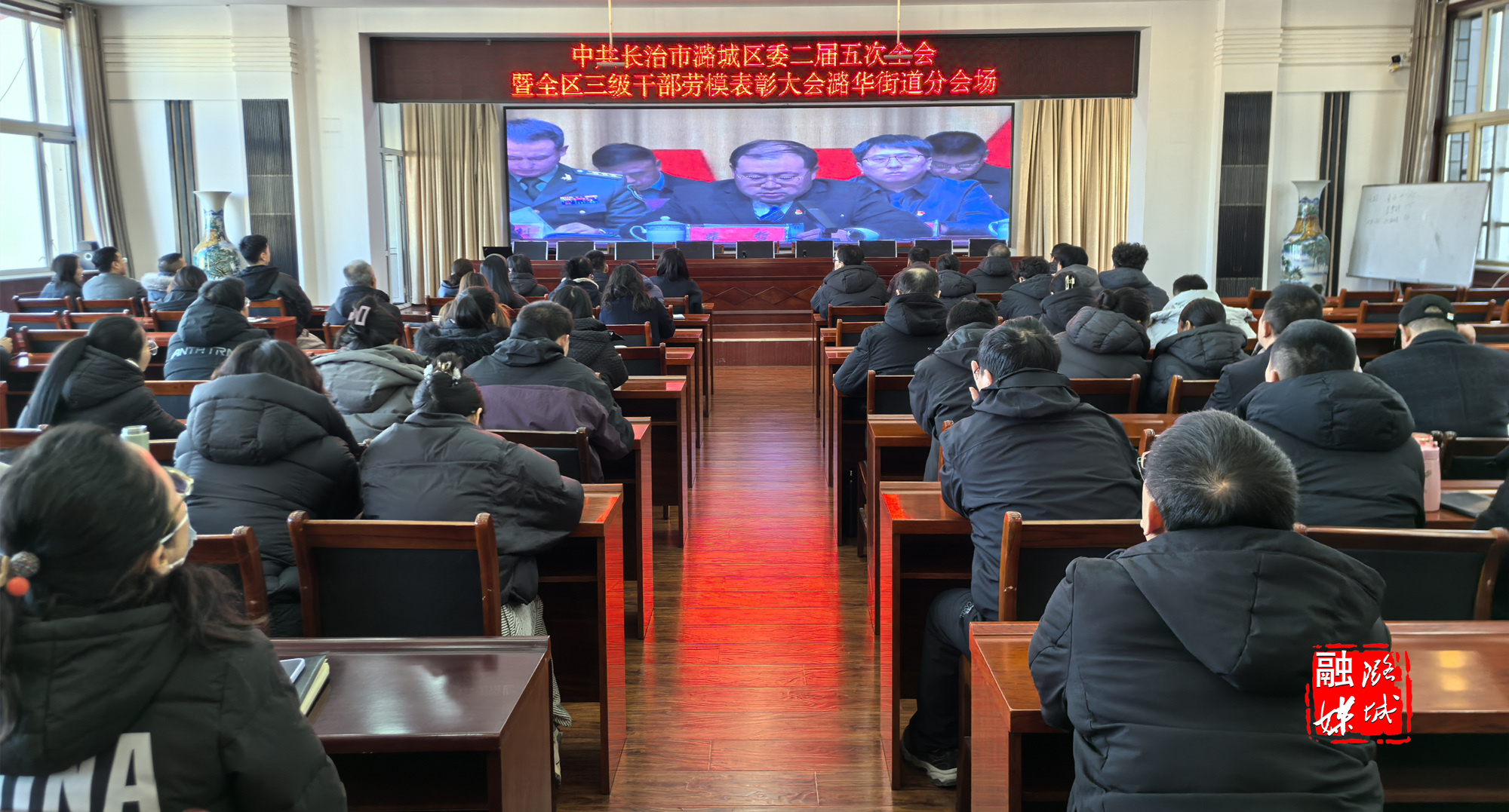 ★春风作序启新程,砥砺奋进谱华章。区委二届五次全会暨全区三级干部劳模表彰大会的胜利召开,奏响了新春奋斗的序曲,吹响了奋勇争先的号角,激发了全区上下干事创业的激情。各乡镇(街道)纷纷组织广大党员干部群众收听收看大会实况,一同学习劳模精神、汲取劳模力量,共同开创潞城区高质量跨越式发展的新局面。