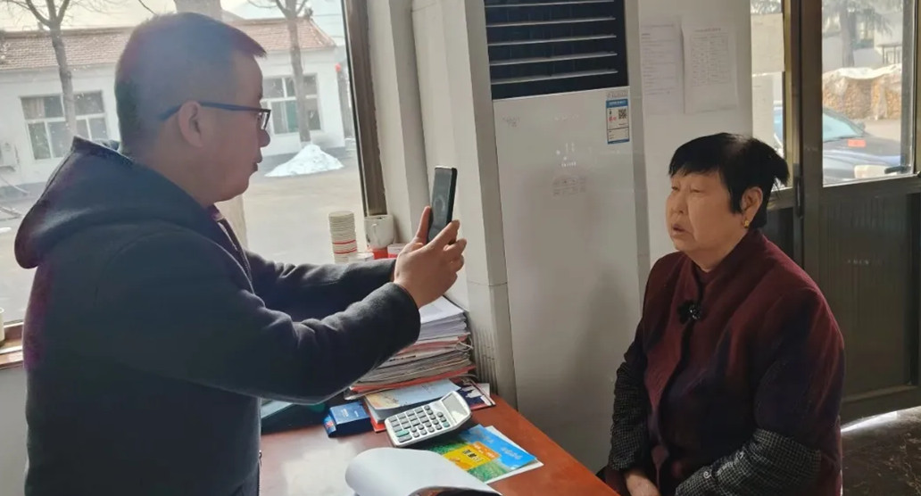 ★2月21日,成家川街道三井、西辿等村工作人员帮助老年人完成养老资格认证。