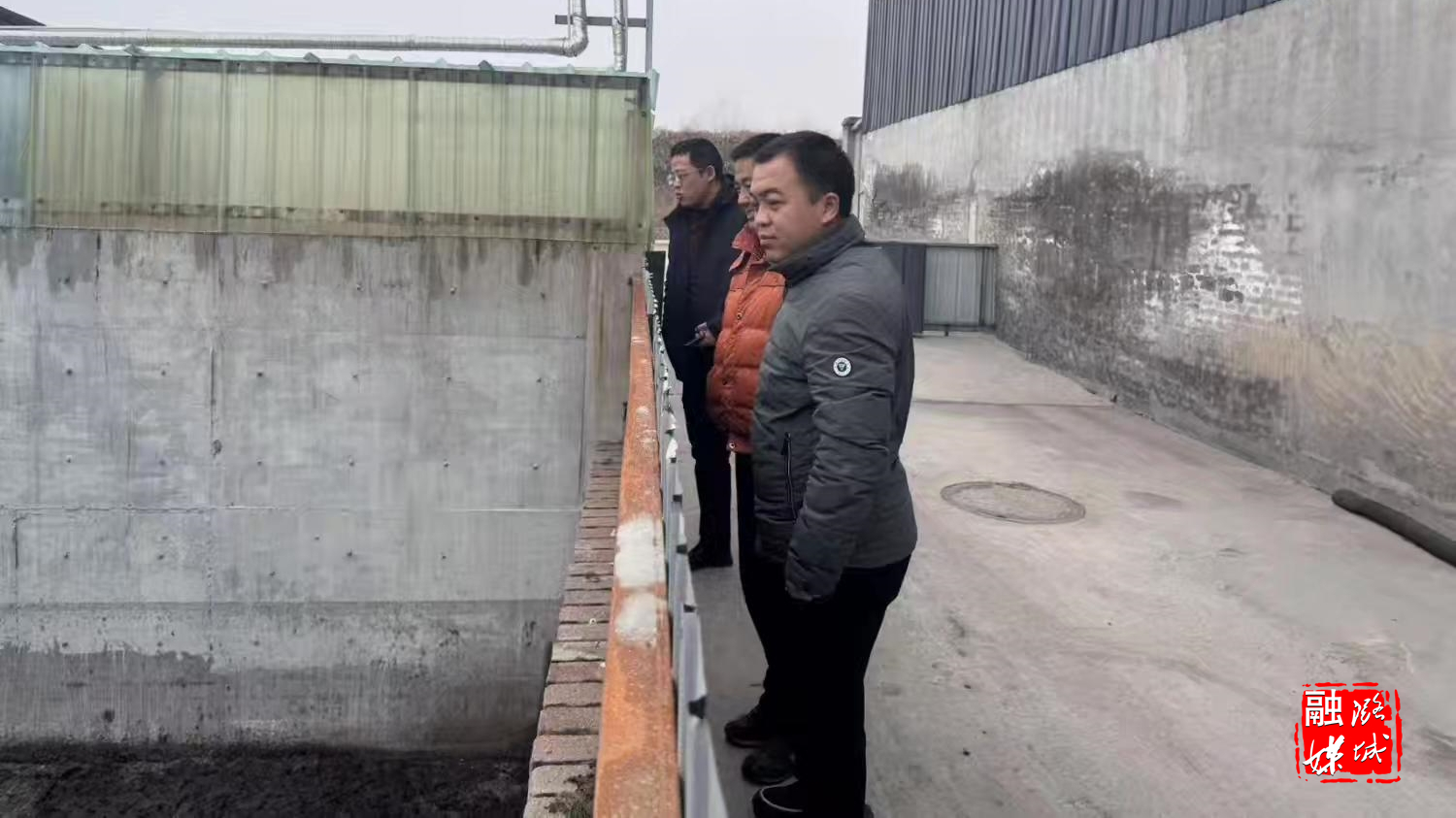 ▲微子镇相关负责人在潞鑫润生猪屠宰场查看安全环保情况。
