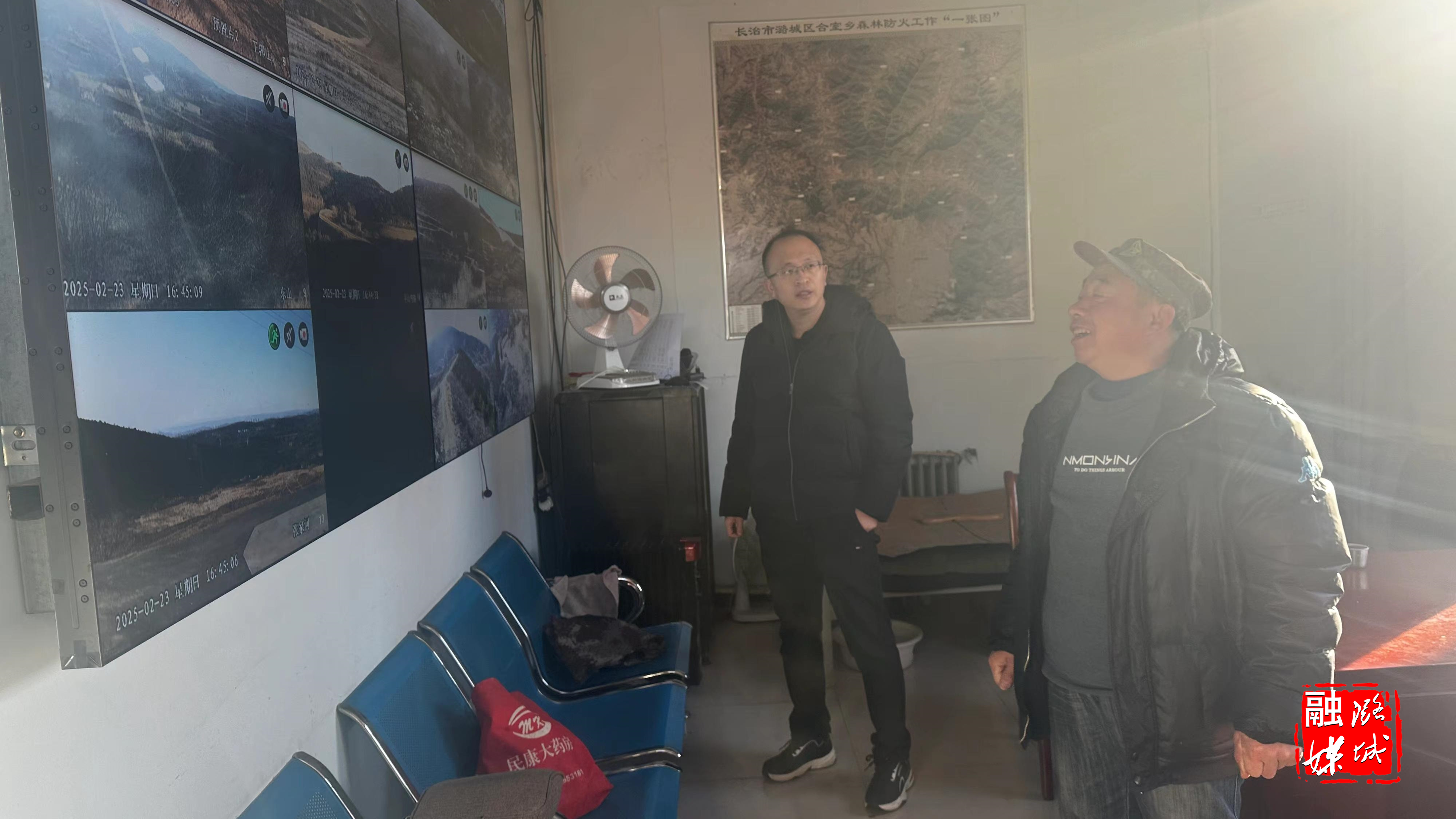 ▲潞华街道相关负责人到合室村实地查看森林防火工作开展情况。
