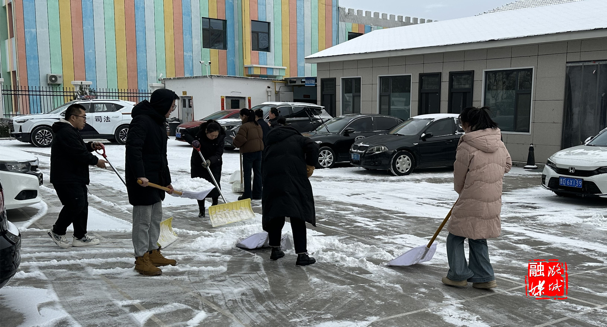 ★3月4日,区司法局组织全体职工在院内清扫积雪。