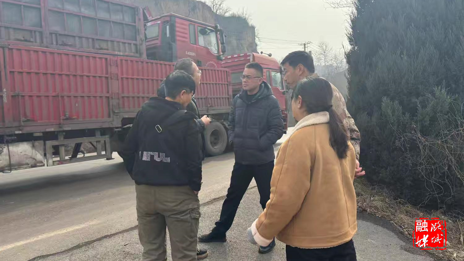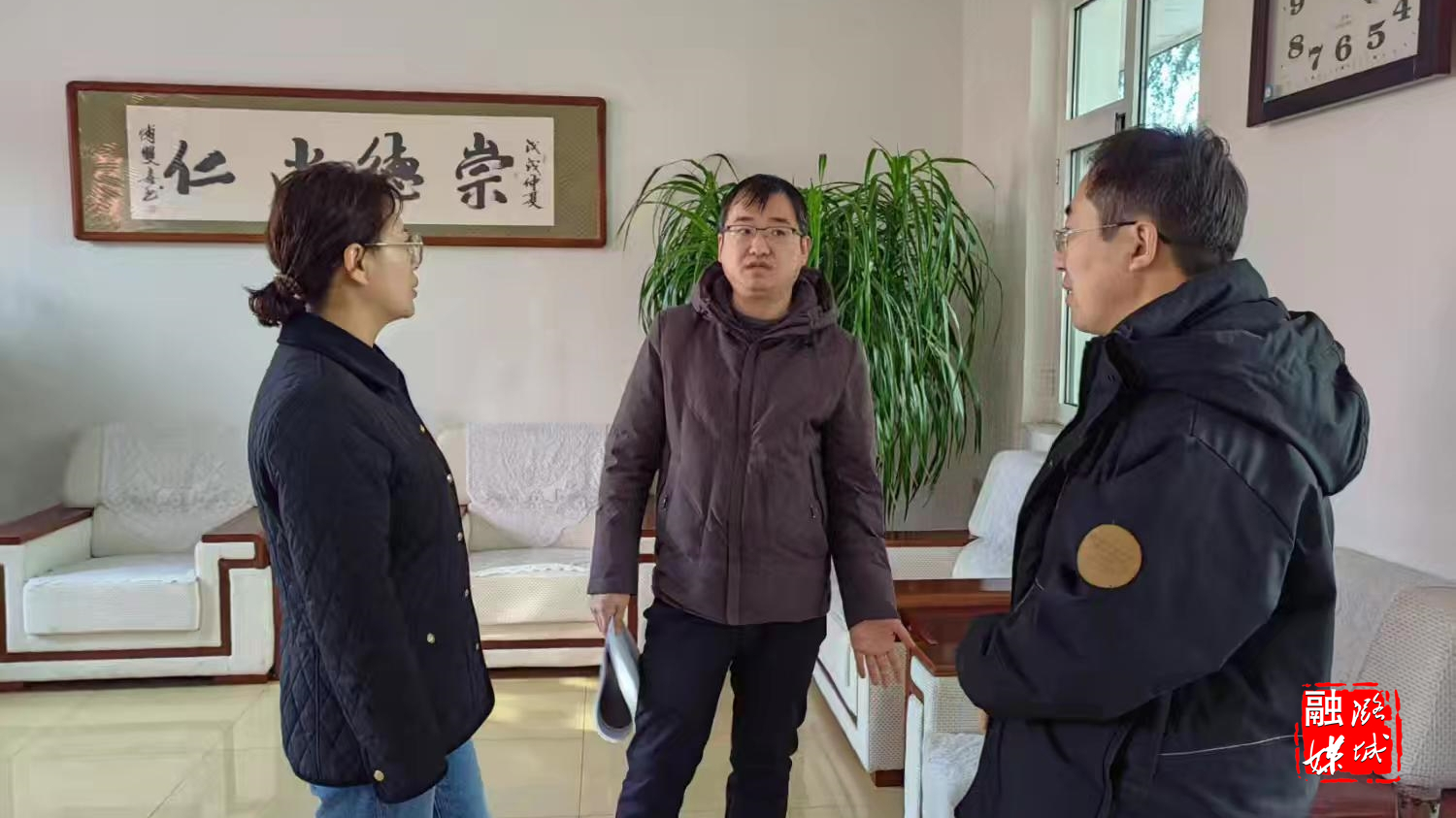 ▲翟店街道工作人员与项目方讨论商贸中心建设事宜。