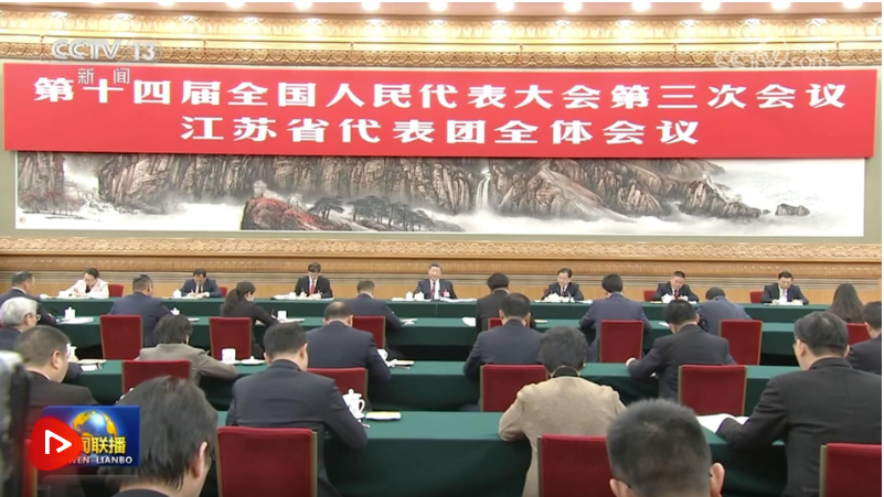 在听取大家发言后,习近平作了发言。他首先表示赞成政府工作报告,对江苏工作予以肯定,希望江苏落实好挑大梁的责任,努力取得新的更大成绩。