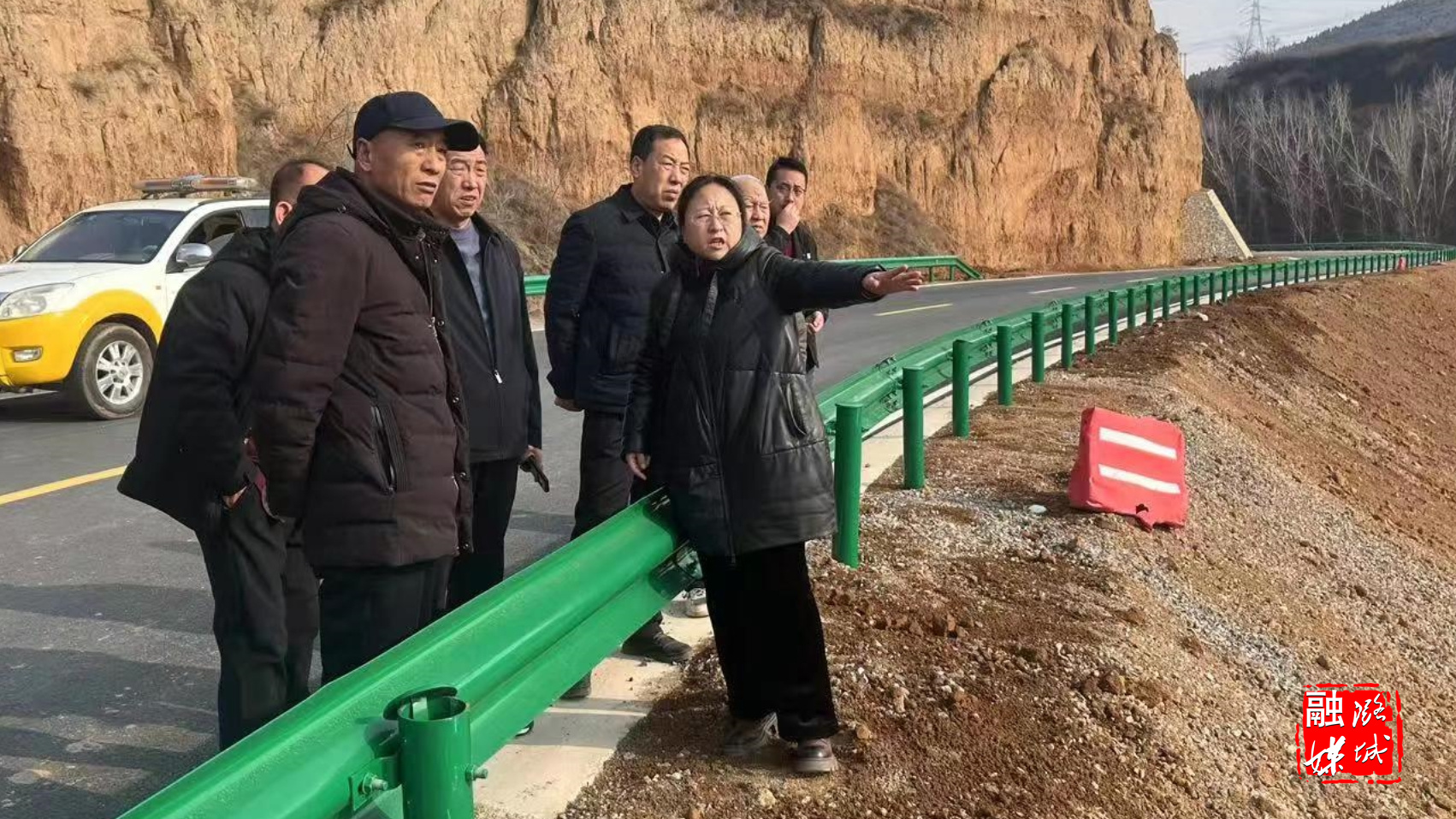 ★3月6日,区交通运输局和林业局工作人员及施工单位规划返桥线绿化事宜。
