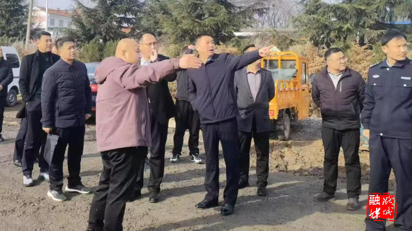 ★3月6日,成家川街道相关负责人在会山底村查看柴胡车间二期项目建设情况。