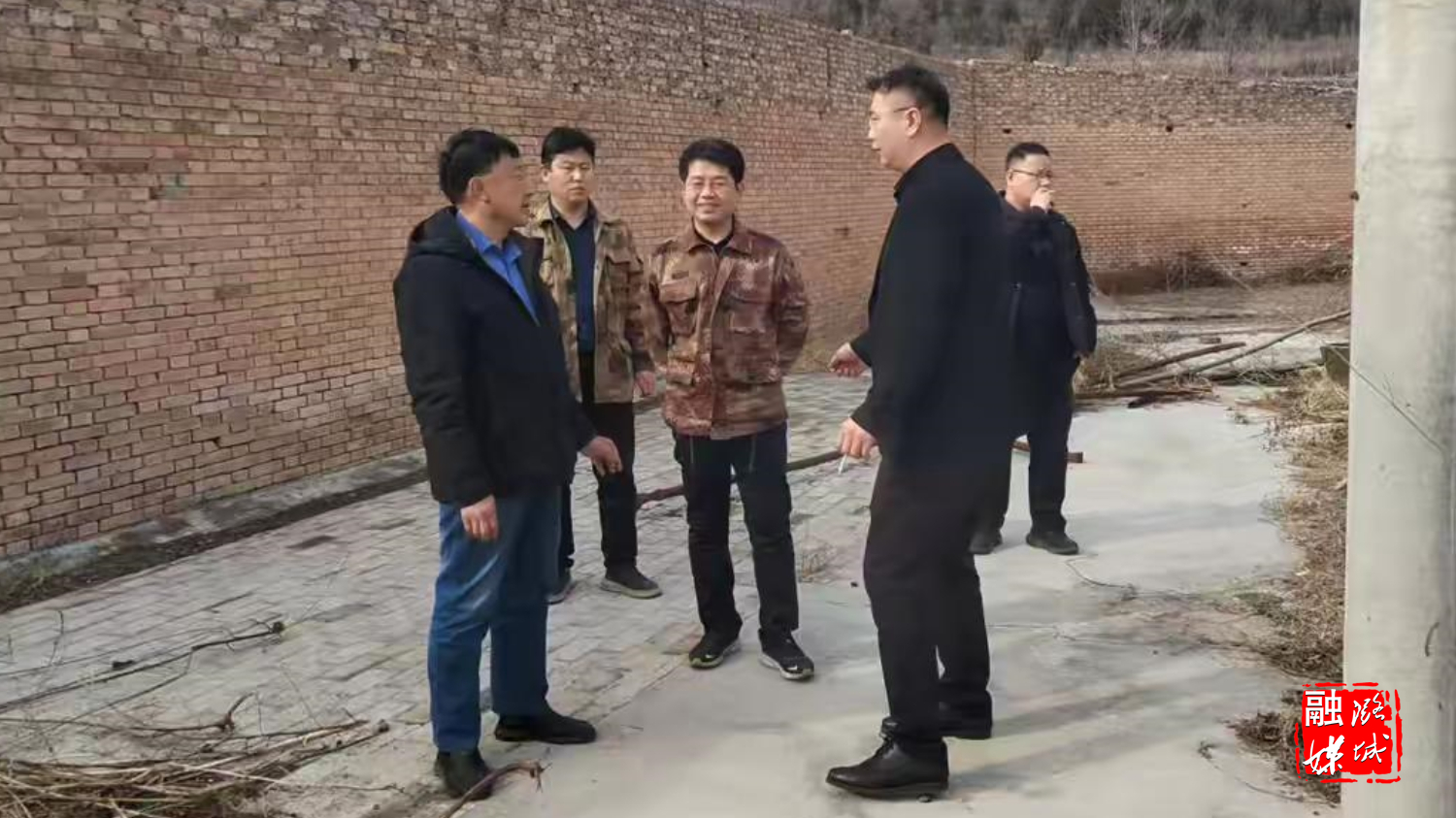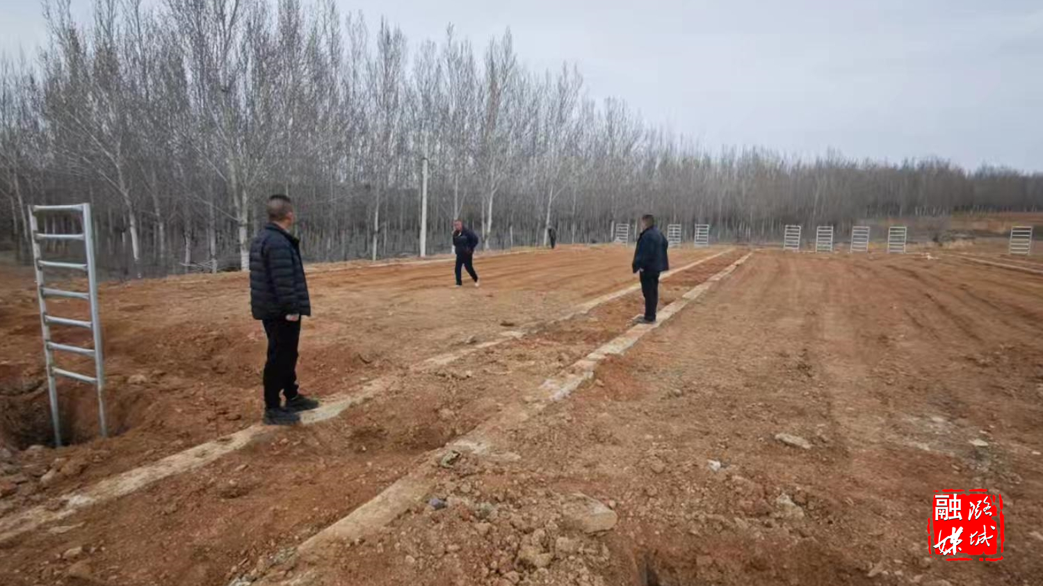 ▲微子镇相关负责人在东靳村查看香菇大棚项目二期工程建设情况。