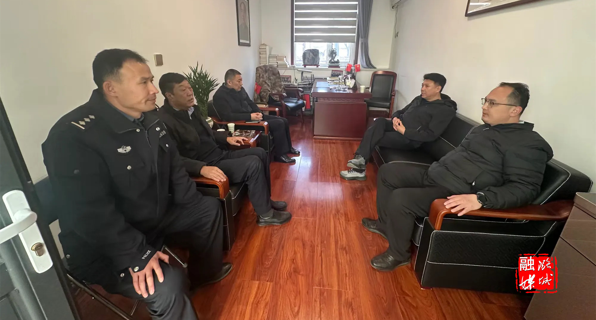 ▲翟店街道工作人员与项目方沟通协调商贸中心建设项目合作事宜。