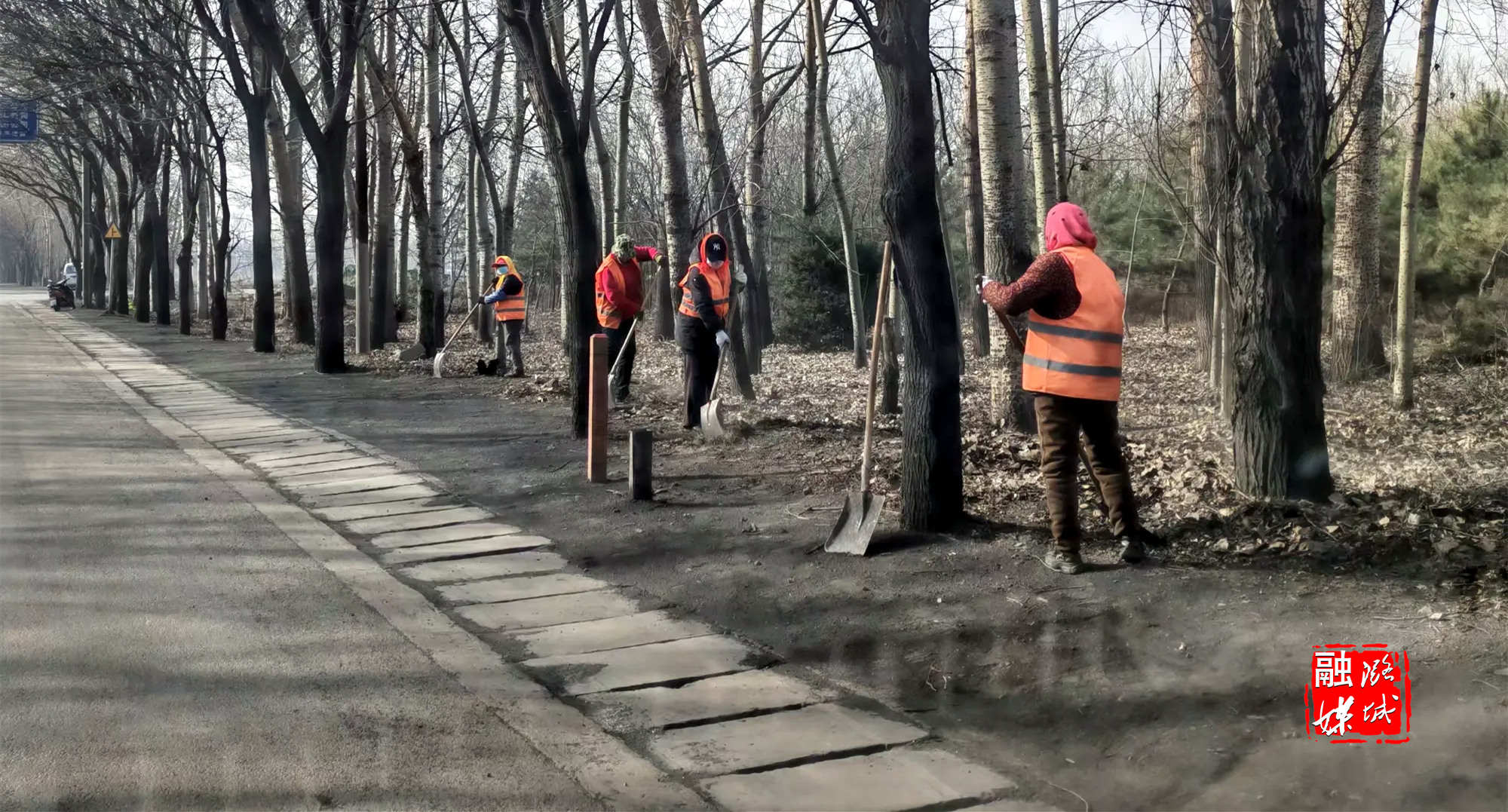 ▲店上镇组织环卫人员对辖区道路两侧进行整理、清扫。