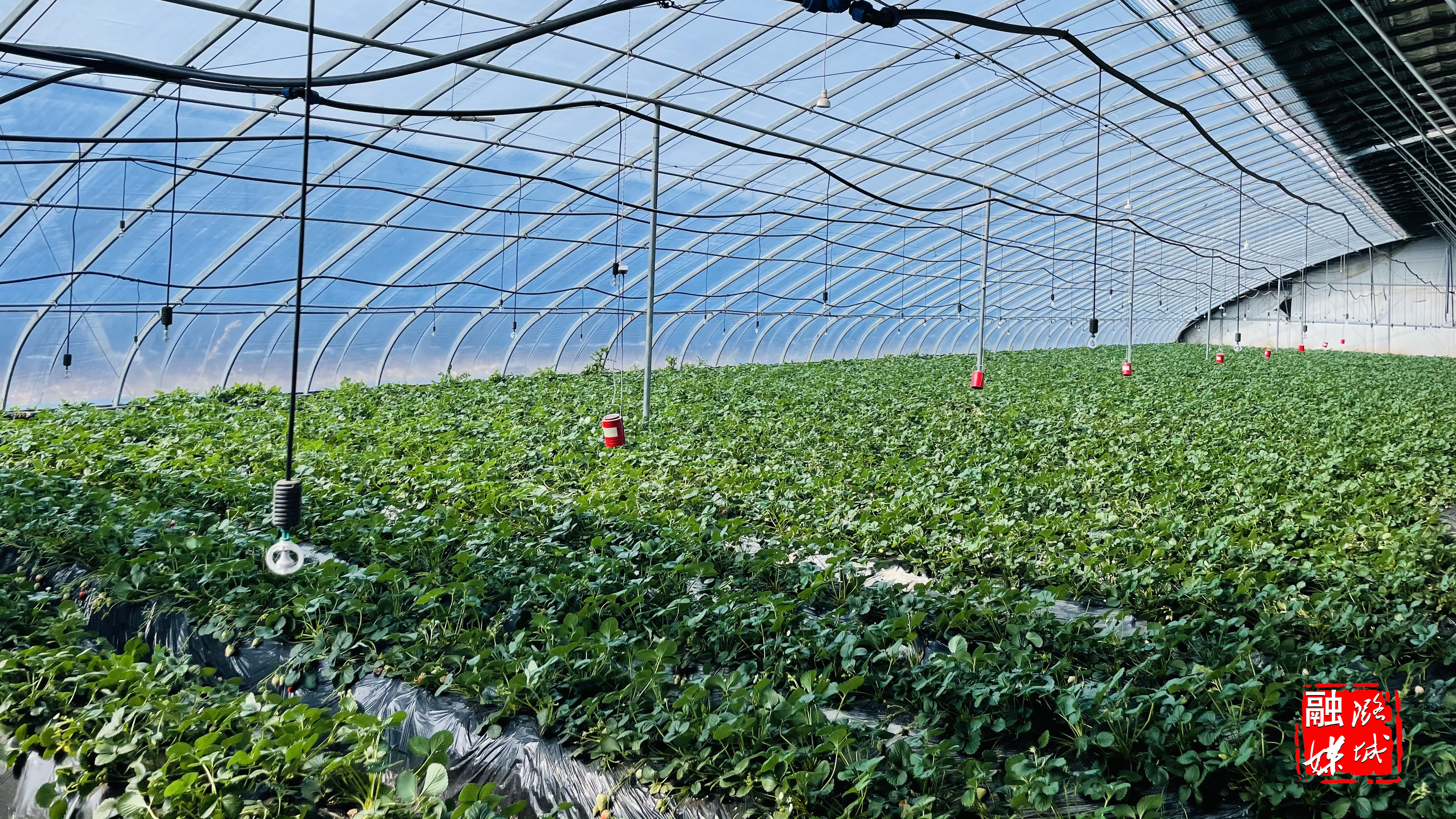 今年,除了尝试种植草莓界“新秀”白雪公主,章姬、香野、红颜等走俏市场多年的“实力派选手”仍旧是孙兴旺草莓大棚里的“主力军”。为了进一步提升草莓质量和产量,孙兴旺不仅屡屡来到田间地头观察研究作物生长规律,还对大棚内的设施设备进行了升级。孙兴旺指着大棚里每隔几米悬挂着的红色小罐为记者介绍道:“草莓不能打农药,就采用这种雾化手段进行杀菌杀虫,健康绿色,吃着放心。”