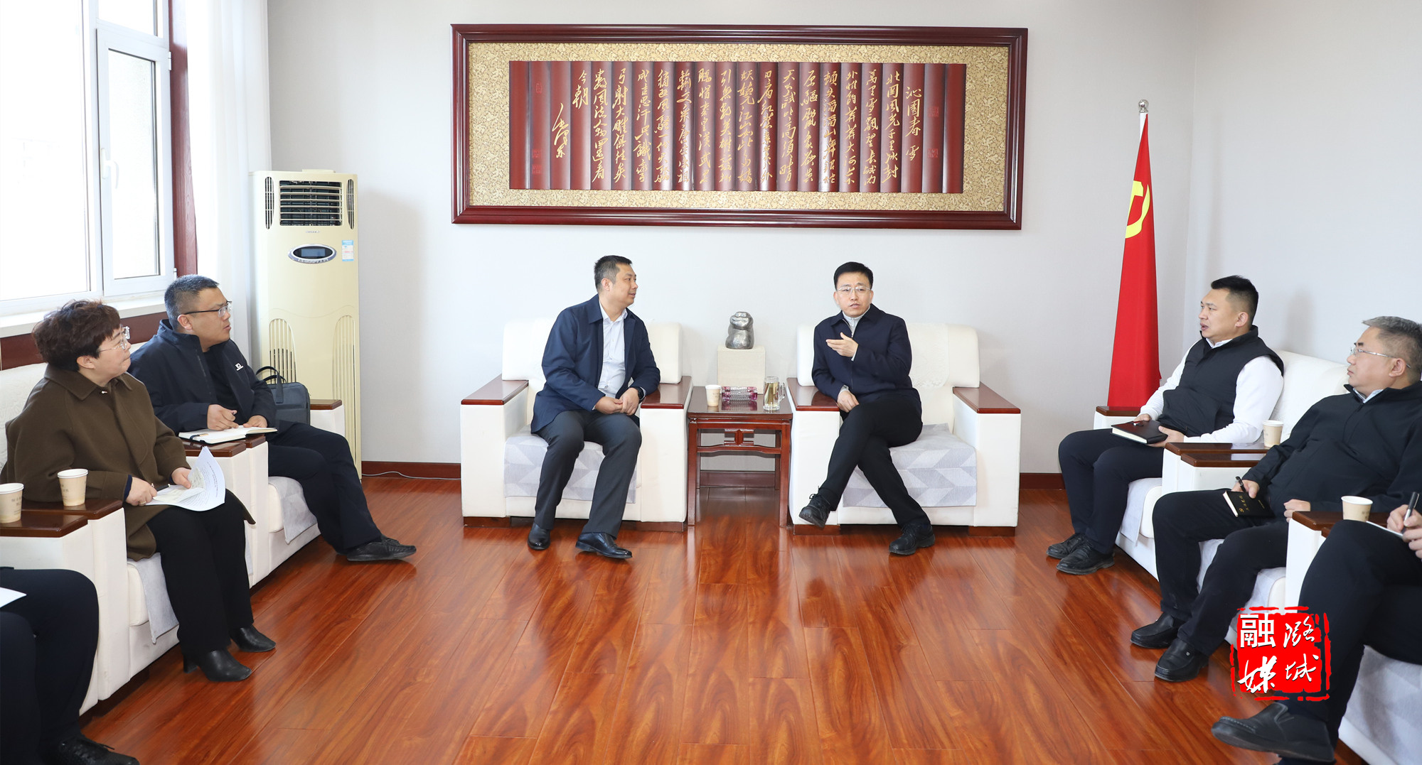 ★3月17日,区委书记段尧刚会见长治市财汇山安能源科技有限公司董事长康建斌,双方就推进源网荷储一体化项目相关事宜进行座谈交流。区委常委、常务副区长张学良,潞城经济技术开发区党工委书记、管委会主任原艳飞,区人大常委会副主任张国清陪同。详情请看→