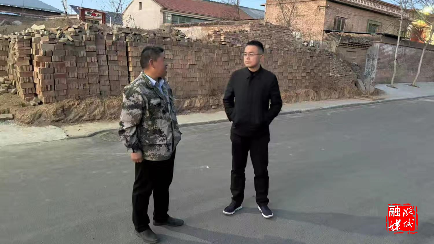 ▲成家川街道工作人员在神泉村协调推进旱地西红柿育苗棚项目。