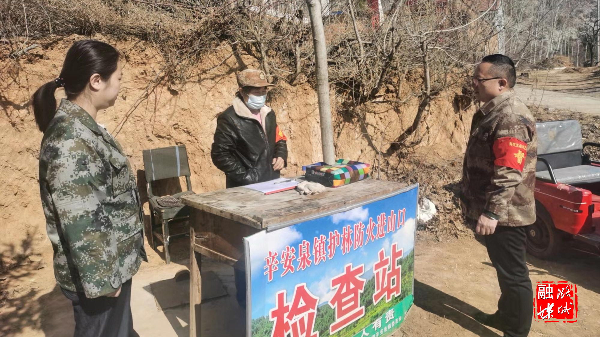 ★3月19日,辛安泉镇工作人员在南马村查看森林防火值班值守情况,并督导环境卫生整治工作。