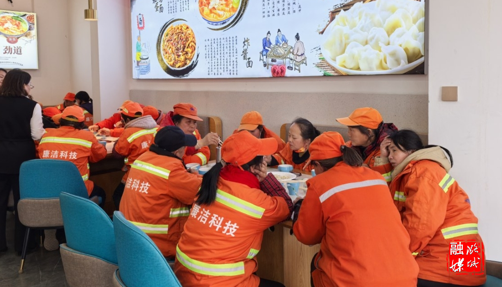 中午时分,由社区爱心商家提供的一碗碗热气腾腾的饺子端上了桌。环卫工人们围坐在一起,一边品尝着美味的饺子,一边分享着生活中的点滴。