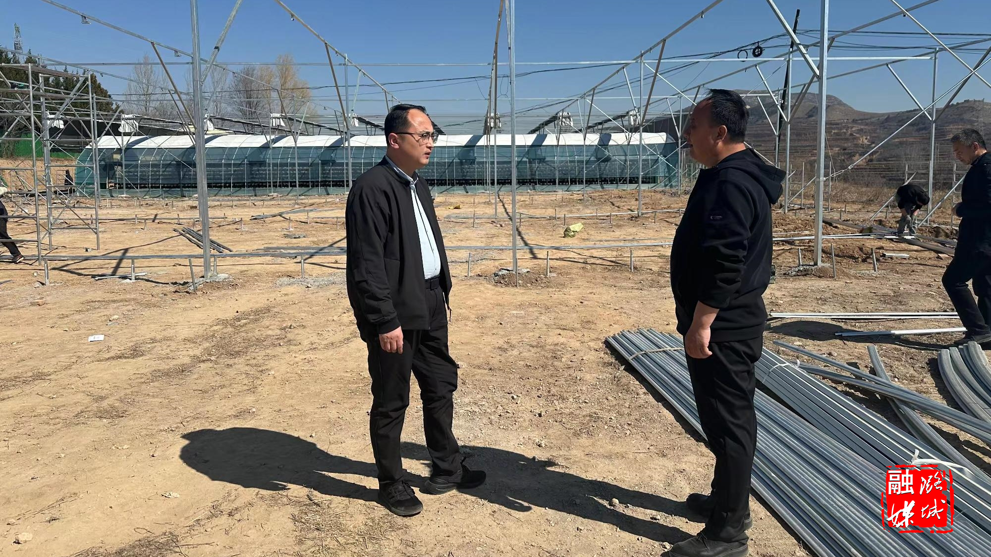 ▲成家川街道负责人在黄池村推进香菇基地二期项目建设、党群服务中心提档升级等重点工作。