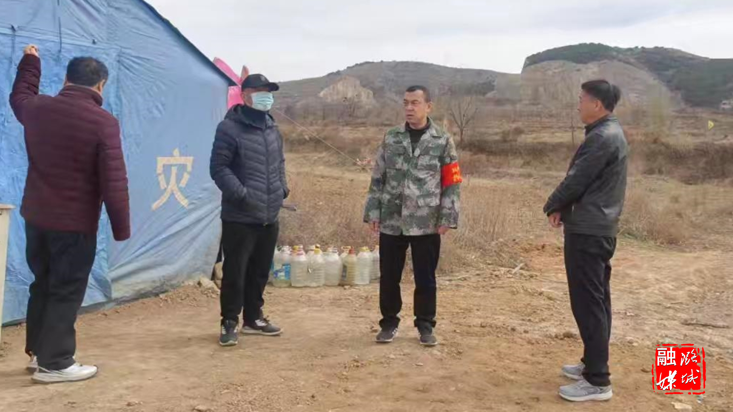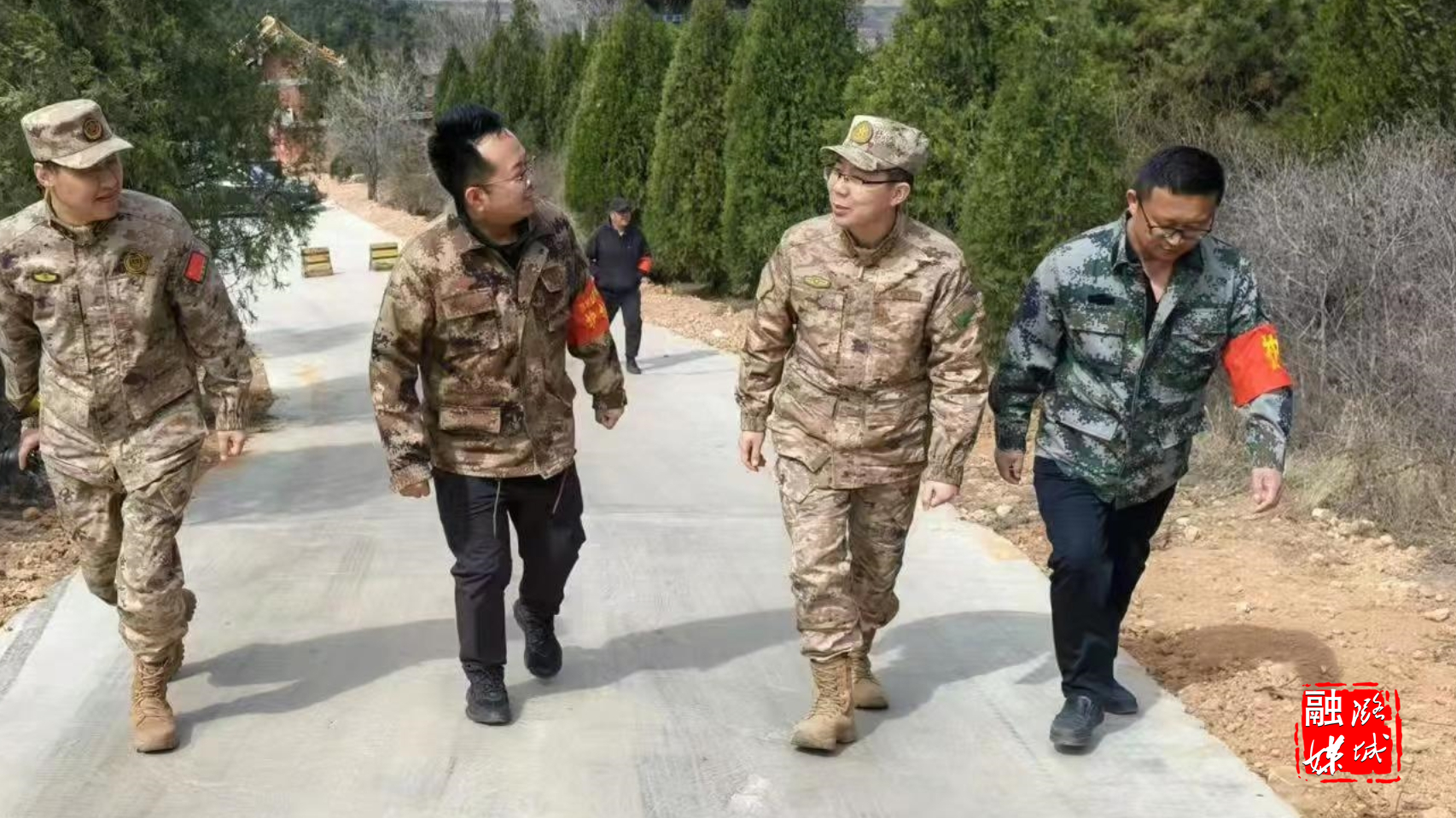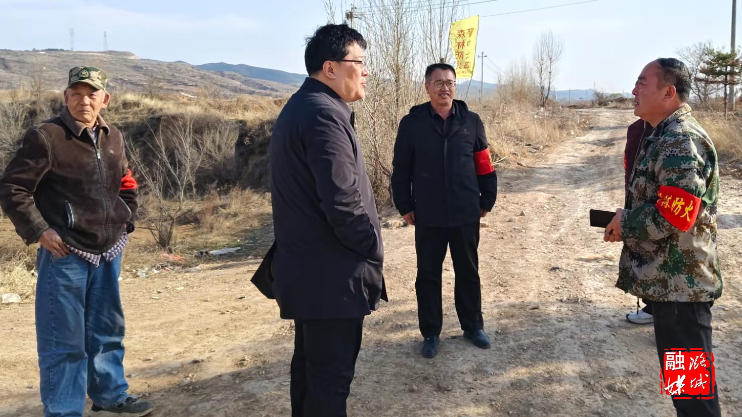 ▲翟店街道相关负责人到防火卡口查看森林防火工作。